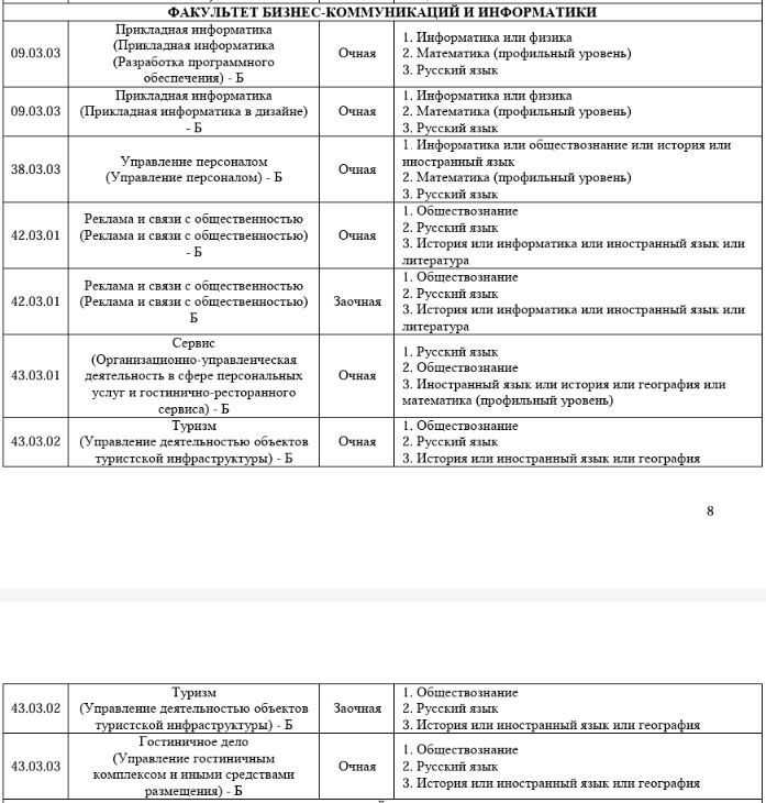 Вступительные испытания на базе 11 классов