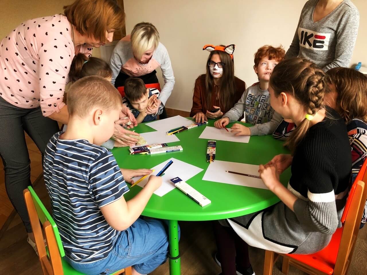 На первом мероприятии студенты перевоплотились в сказочных персонажей, провели игровую программу для детей и обсудили c ними любимые сказки. Ребята с огромным удовольствием рисовали своих любимых героев на бумаге и делились своими впечатлениями. В конце встречи все дети получили в подарок карандаши и альбомы для рисования от спонсора, чтобы в дальнейшем развивать мелкую моторику и навыки рисования. За предоставленные подарки организаторы от всей души благодарят книготорговую группу «Продалит».