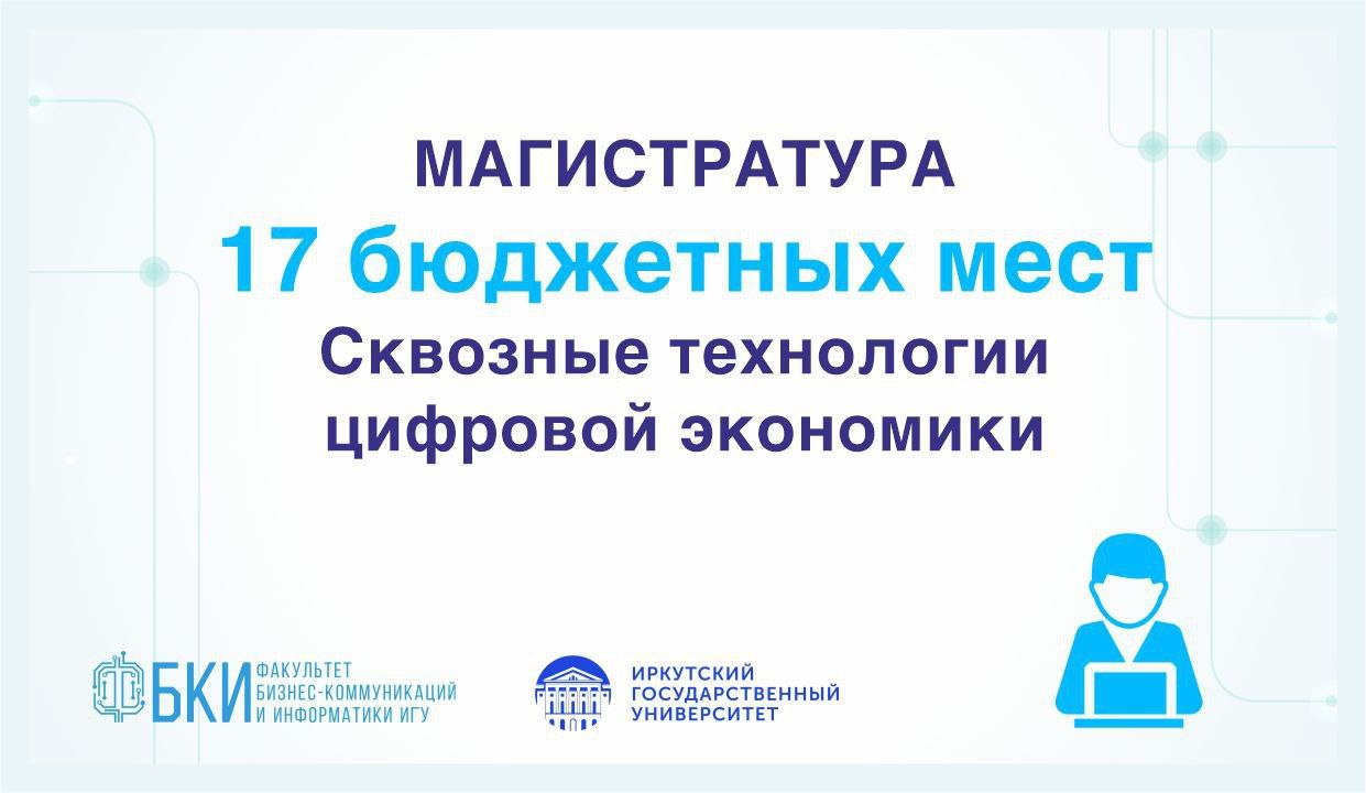 17 бюджетных мест в магистратуре ФБКИ ИГУ 09.04.03. ПРИКЛАДНАЯ ИНФОРМАТИКА, программа «Сквозные технологии цифровой экономики»