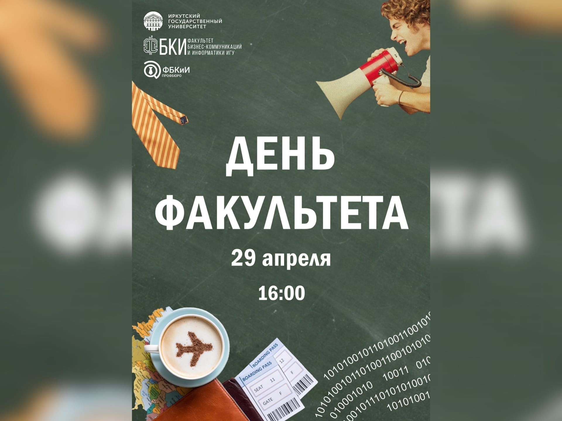 Уже в этот четверг 29 апреля пройдёт торжественное мероприятие — День факультета! В 16:00 в 10 ауд. (ул. Лермонтова, 126, 6 корпус ИГУ) пройдёт концерт, посвященный Дню факультета, с яркими номерами, награждением кафедр, любимых преподавателей и активных студентов! Также в этот день состоится конкурс «Битва специальностей», поэтому обязательно приходи и поддержи свою команду! Битва специальностей! С 27 по 28 апреля на переменах команды-участницы будут проводить для вас интерактивы. Битва преподавателей! 29 апреля с 11:40 по 12:10 наши студенты будут читать лекции для преподавателей, а преподаватели, в свою очередь, смогут задать интересующие их вопросы. День факультета! 29 апреля в 16:00 отчетный концерт в 10 аудитории. Приходи и отпразднуй этот день со всем факультетом!