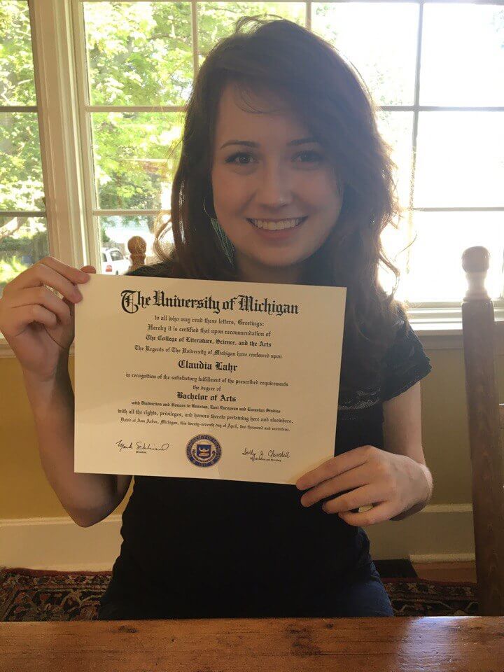 В этом учебном году на факультете сервиса и рекламы начинает свою стажировку новый преподаватель английского языка Клаудия Лар — молодая девушка из Мичиганского университета США. Клаудия Лар с детства интересовалась историей России, и ей выпала возможность изучать русский в университете, а после поездки в Санкт-Петербург Клаудия влюбилась в нашу страну, съездила в Великий-Новгород и теперь приехала в наш город по программе The Fulbright Program in Russia. Для студентов факультета сервиса и рекламы Клаудия будет преподавать разговорный практикум. Наши студенты смогут не только подтянуть иностранный язык, но и ближе познакомиться с американской культурой. Ведь очень важно при изучении нового языка практиковать свои знания в разговоре с иностранцами. «Я много читала об истории России, но мало знала, как живут люди. После первой поездки в Россию я заметила, что Америка и Россия очень похожи, в культуре есть отличия, но я бы не сказала, что они больше, чем мы думали и чем говорят в новостях», — поделилась с нами Клаудия. Клаудия отмечает, что для нее этот год будет трудным, потому что она далеко от дома, но она намерена развиваться. Суровой сибирской зимы Клаудия не боится, так как зима ее любимое время года. С родными Клаудия переписывается каждый день, а также она очень скучает по своим питомцам — собаке Сэми и котенку Маше. Учебный год только начинается, студентам предстоят еще множества интересных и познавательных занятий. Надеемся, что для Клаудии Лар этот год пройдет успешно и плодотворно, а в этом ей помогут студенты нашего факультета!
