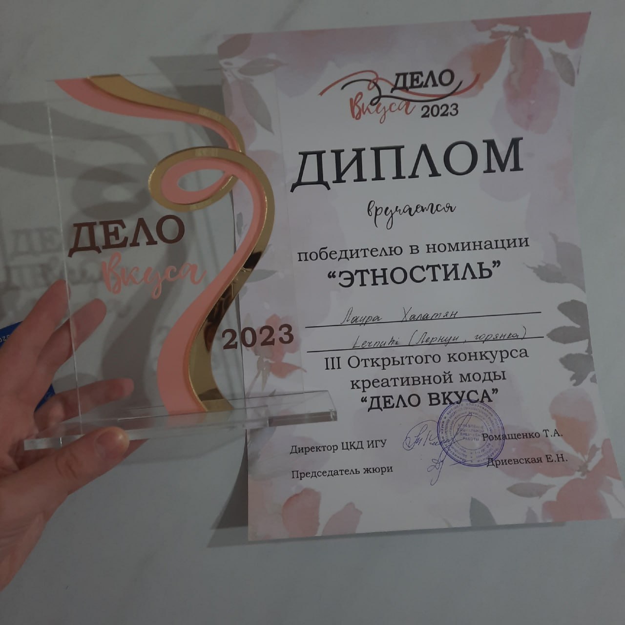 16 апреля в ИГУ прошел III Открытый конкурс креативной моды «Дело вкуса». В номинации «Этностиль» победила студентка факультета бизнес-коммуникаций и информатики Лаура Халатян. Организаторы мероприятия — управление социальной и внеучебной работы ИГУ, центр культуры и досуга ИГУ и первичная профсоюзная организация студентов ИГУ. Любой желающий может принять участие в конкурсе, показать свое творчество, креативность и продемонстрировать навыки по созданию костюмов или целой коллекции одежды. Накануне мероприятия с участниками работала персональный фешн-стилист Катя Креналинова. Она провела консультацию, в которой рассказала о стилизации съемок и показов. Также Катя продемонстрировала рабочие инструменты, которые можно использовать как самостоятельно, так и в командной работе дизайнеров и стилиста для более выгодной подачи коллекции. Конкурс проводился по 8 номинациям: «Светский раут», «Этностиль», «Авангард», «Городская одежда», «Сценический костюм», «Вторая жизнь старых вещей», «Аксессуары», «Эскиз костюма». Жюри оценивало концепцию и цельность коллекции, оригинальность и креативность, качество выполнения костюмов, завершенность образов, исполнительское мастерство, конструктивно-технологические решения. Лаура Халатян, победившая в номинации «Этностиль», учится на 3 курсе направления «Сервис». Лаура представляла национальные костюмы, которые шила сама. Жюри высоко оценили ее работу. Лаура поделилась впечатлениями о конкурсе: