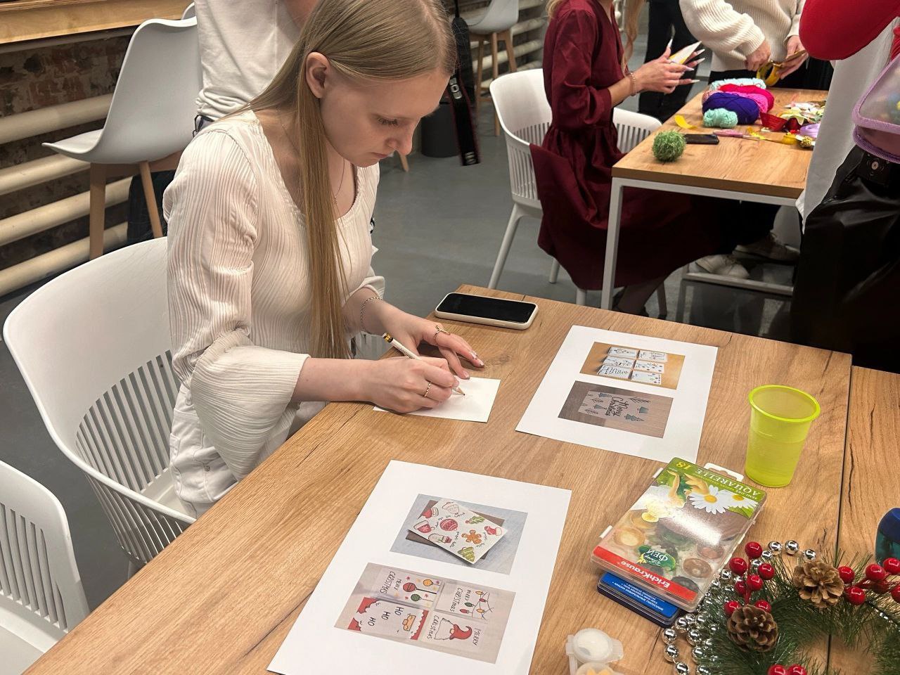 Самое уютное событие года студенты провели с горячим какао и веселыми интерактивами. Каждый нашел себе занятие по душе: ребята делали новогодние открытки, елочки, поделки из бисера, писали письма в будущее, участвовали в квизе, играли в тайного Санту.