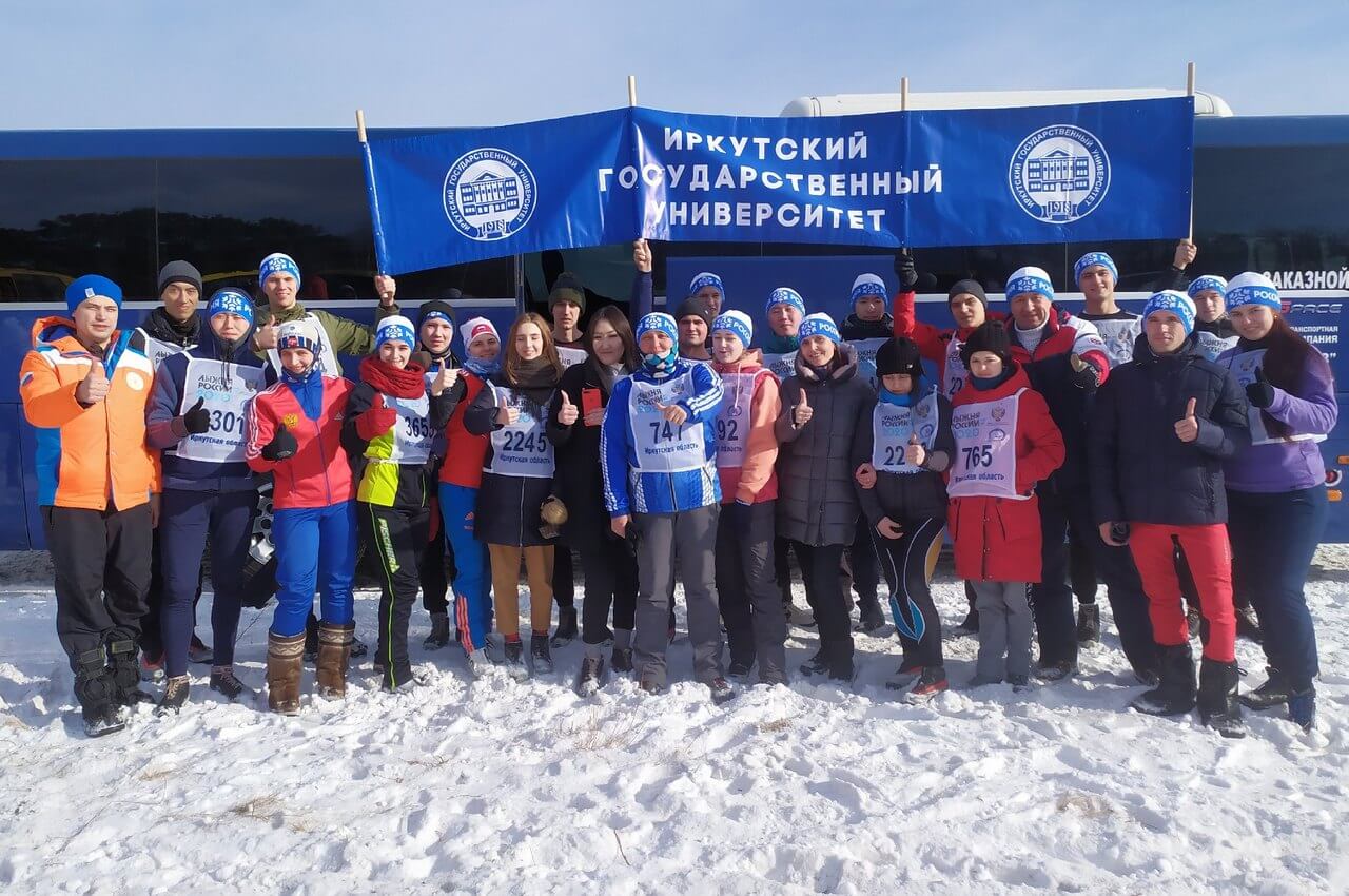 Иркутский государственный университет традиционно принял участие во Всероссийской массовой гонке «Лыжня России», которая прошла в стране в 38-й раз. В этом году в десятку сильнейших на дистанции 10 километров вошла второкурсница факультета бизнес-коммуникаций и информатики ИГУ София Король. Всего на старт лыжни в поселке Молодежный встало более шести тысяч участников. Основных дистанций было: две — 5 км для юношей и девушек до 18 лет и 10 км — от 18 и старше. Кроме того, предусматривалась дистанция и для самых маленьких — 300 метров. ИГУ на массовых соревнованиях представляли студенты разных факультетов и институтов, в том числе спортсмены-лыжники, члены сборной по ориентированию, курсанты Военного учебного центра, а также преподаватели физкультурно-оздоровительного центра.