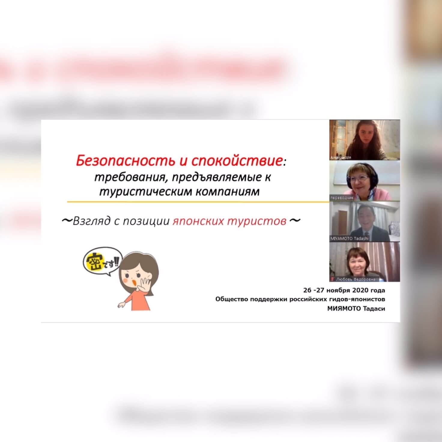 Безопасность — вот главное, что должны обеспечить японским туристам туристические компании, которые приглашают посетить Байкал, Хабаровск, Владивосток и другие туристские дестинации Сибири и Дальнего Востока. Об этом узнали студенты и преподаватели факультета бизнес-коммуникаций и информатики 26−27 ноября 2020 года, приняв участие в онлайн-семинаре, который организовали и провели Генеральное консульство Японии в г. Хабаровске, Японский центр в Хабаровске и ОАО «Сибэкспоцентр». Программа двухдневного семинара включала в себя обсуждение очень актуальных для развития туризма в сибирских регионах вопросов — это «Безопасность и спокойствие: требования, предъявляемые к туристическим компаниям. Взгляд с позиции японских туристов» и «Туристическое позиционирование Дальнего Востока и Сибири глазами японского эксперта». Студентка 1 курса направления подготовки «Туризм» Александра Крижевец рассказала:
