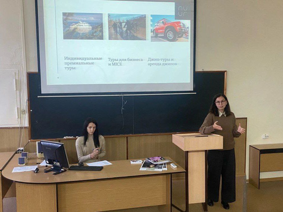 Лекцию о продвижении туроператора "НУУР 1642" провели для студентов направления «Реклама и связи с общественностью» ФБКИ ИГУ руководитель Алена Александровна Ямщикова и директор по маркетингу, специалист с 20-летним опытом работы в отрасли Татьяна Викторовна Пальвинская.
