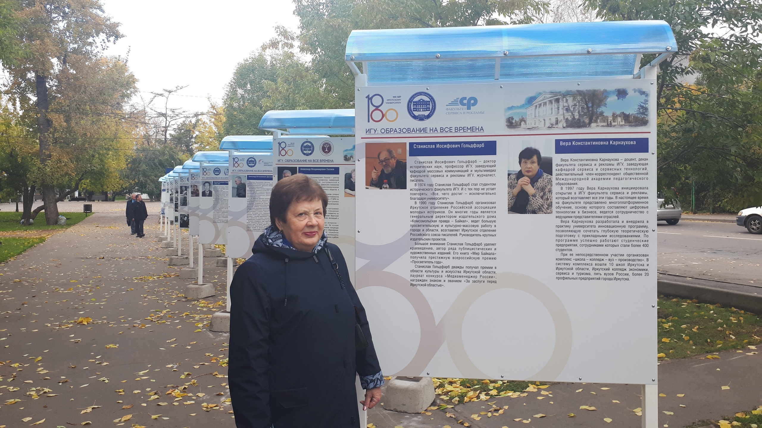В честь 100-летия университета на бульваре Гагарина открылась фотовыставка, посвящённая выдающимся сотрудникам ИГУ. Она рассказывает о 65 учёных университета, которые внесли значительный вклад в развитие Приангарья. Среди них — наш декан Вера Константиновна Карнаухова и заведующий кафедрой массовых коммуникаций и мультимедиа Станислав Иосифович Гольдфарб. В 1997 году Вера Константиновна Карнаухова инициировала открытие факультета сервиса и рекламы, который возглавляет все эти годы. За 21 год на факультете прошли обучение более 3000 специалистов. В.К. Карнаухова разработала и внедрила в практику университета инновационную программу, позволяющую сочетать глубокую теоретическую подготовку с прикладными исследованиями. По программе успешно работают студенческие предприятия, сотрудниками которых стали 400 с лишним студентов. При непосредственном участии В.К. Карнауховой был организован комплекс «ШКОЛА — КОЛЛЕДЖ — ВУЗ — ПРОИЗВОДСТВО». В систему комплекса вошли 10 школ города Иркутска и Иркутской области, Иркутский колледж экономики, сервиса и туризма, 5 вузов РФ, более 20 профильных предприятий города Иркутска. В различных проектах за годы существования комплекса приняло участие более 500 школьников, 200 студентов, 200 учителей, 100 преподавателей вузов. На протяжении всего существования факультет сервиса и рекламы сотрудничал с ведущими представителями отраслей. На факультете успешно работают: кафедра на базе медиахолдинга «Комсомольская Правда-Байкал», лаборатория инновационных технологий в наукоемких областях на базе Центра молодежного инновационного творчества STEM-Байкал ООО «Полюс НТ». Вера Константиновна Карнаухова — активный участник международных научных и научно-практических конференций, член Ученого Совета ИГУ, действительный член-корреспондент общественной Международной академии педагогического образования. По результатам научной работы В.К. Карнауховой издано около 100 научных трудов, в том числе 3 монографии и учебник для вузов, выдержавший 4 переиздания. Станислав Иосифович Гольдфарб в 1974 году стал студентом исторического факультета ИГУ, и тех пор не устает повторять: «Всё, чего достиг — исключительно благодаря университету». Сейчас Станислав Иосифович — доктор исторических наук, профессор ИГУ. Многие годы является генеральным директором издательского дома «Комсомольская правда — Байкал», ведет большую просветительскую и культурно-массовую работу в городе и области, возглавляет Иркутское отделение Российского союза писателей. Профессор Гольдфарб награжден знаком и званием «За заслуги перед Иркутской областью», избирался в Областную Общественную палату, в настоящее время является членом Общественной палаты г. Иркутска. Факультет гордится своими руководителями и учеными. Посмотреть выставку «Учёные Иркутского государственного университета для Приангарья» можно на бульваре Гагарина. Она расположена по обе стороны от памятника Александру III, и будет действовать до середины ноября.