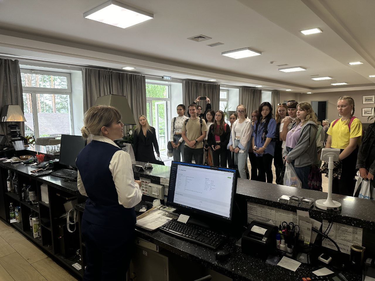 В ходе поездки студенты познакомились с внутренней структурой предприятия, пообщались с администраторами отеля, задали вопросы шеф-повару о его методах работы с персоналом, поговорили с маркетологом парк-отеля о последних тенденциях в гостинично-ресторанном бизнесе. Кроме того, ребята посетили строящийся SPA-корпус отеля, кинозал и зал караоке, а также гостиничные номера.