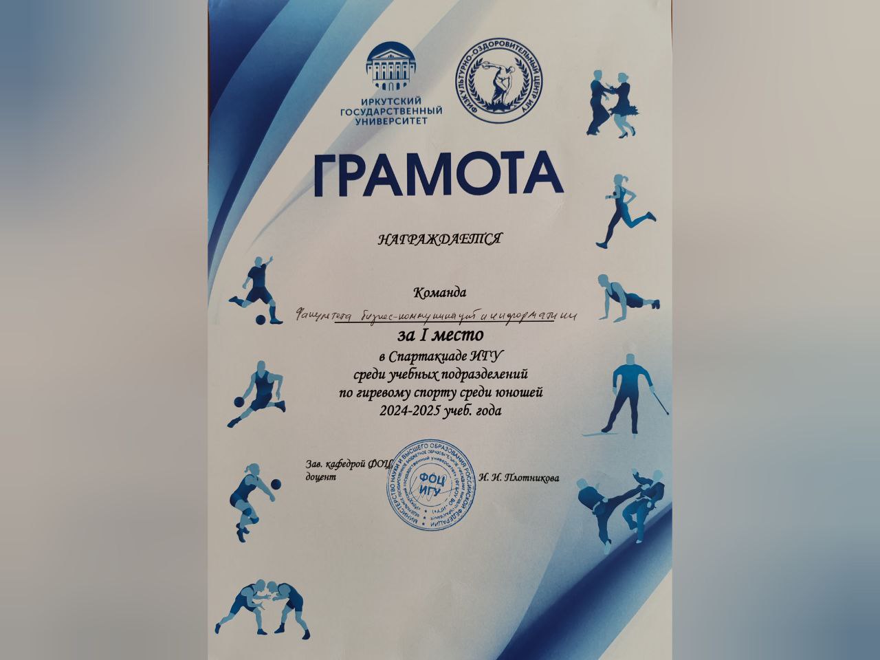 Первое место в Спартакиаде ИГУ по гиревому спорту — у нашей команды!
