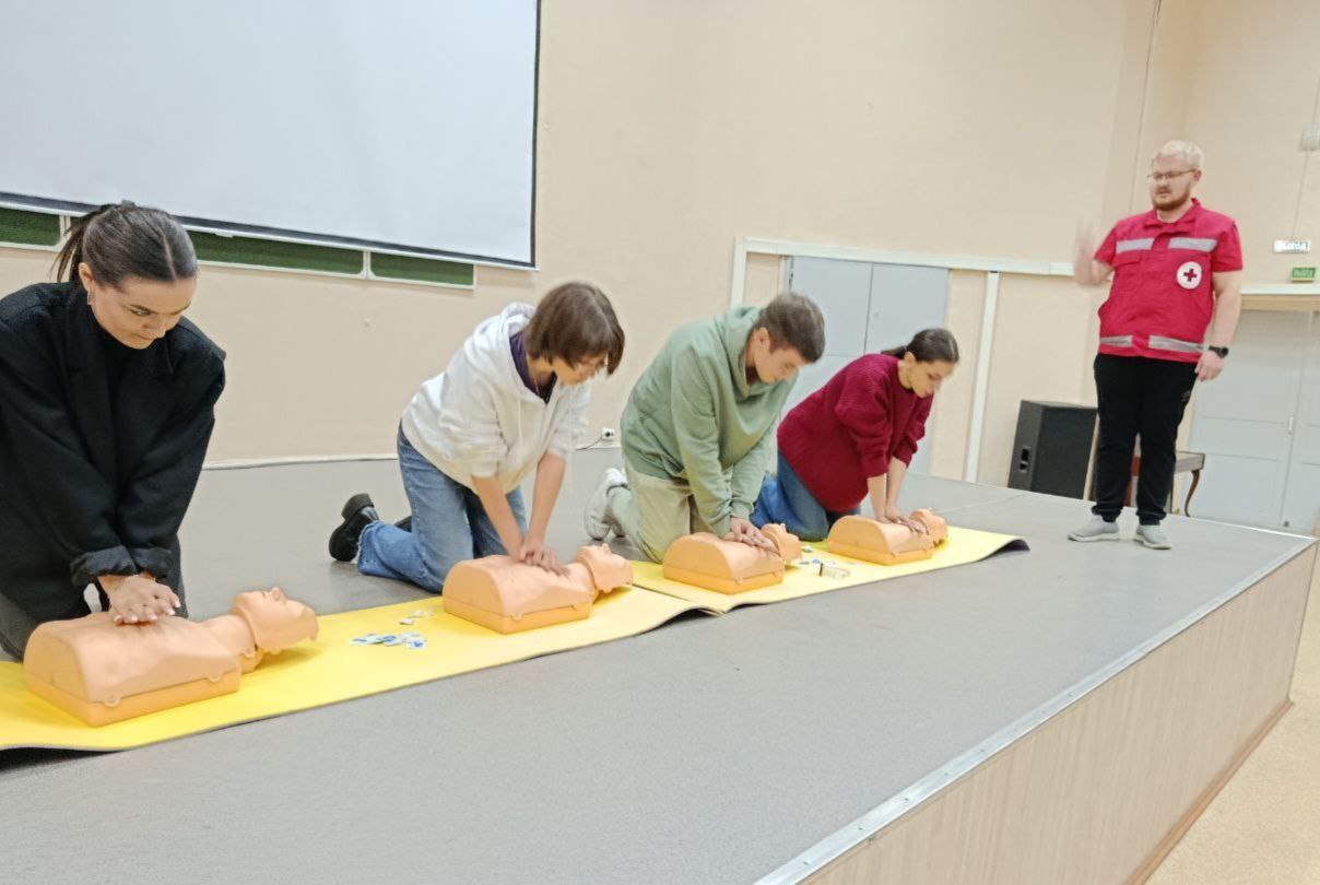Первокурсники изучили алгоритм оказания первой помощи, проведение сердечно-легочной реанимации, приемы оказания первой помощи при инородном теле в дыхательных путях и при эпилепсии, способы плановой и экстренной эвакуации.