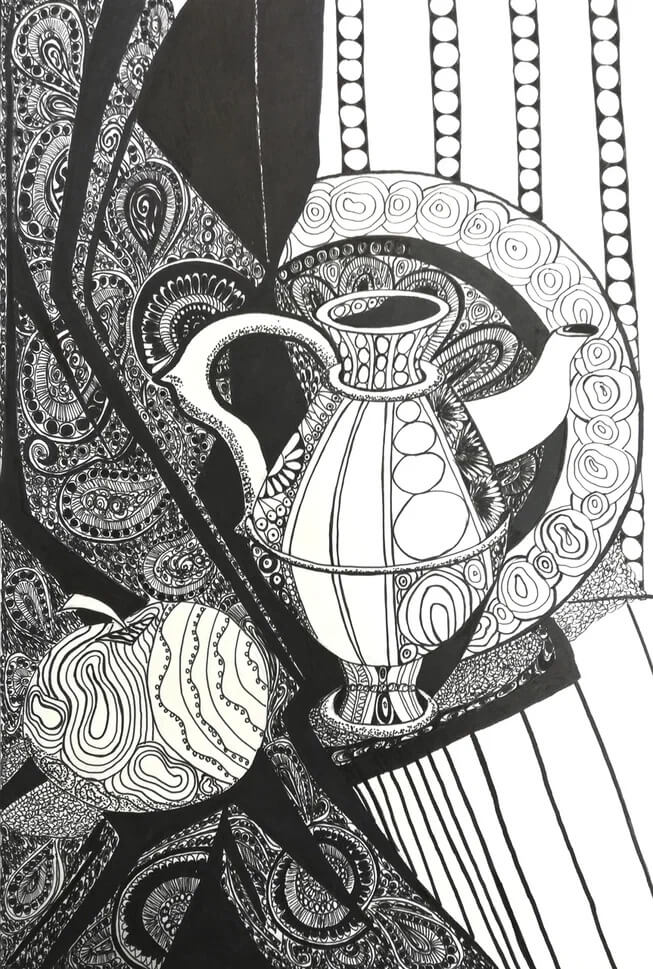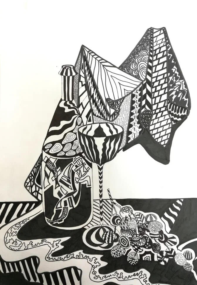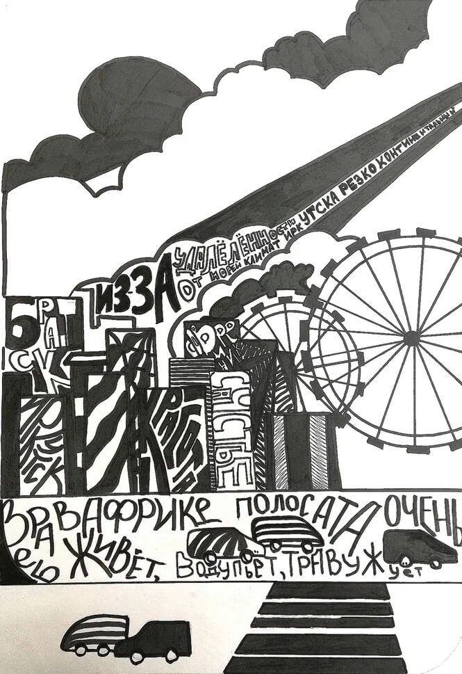 Рисовать я научилась в университете на дисциплинах у Анастасии Валентиновны. То, что заставило меня нарисовать этот рисунок — творческий интерес. Мне нравится, когда в процессе рисования раскрывается какая-то тайна. Это поддерживает во мне мотивацию. Иногда у меня нет четкого представления о том, что и зачем я делаю, и я просто поддаюсь импульсу рисовать.
