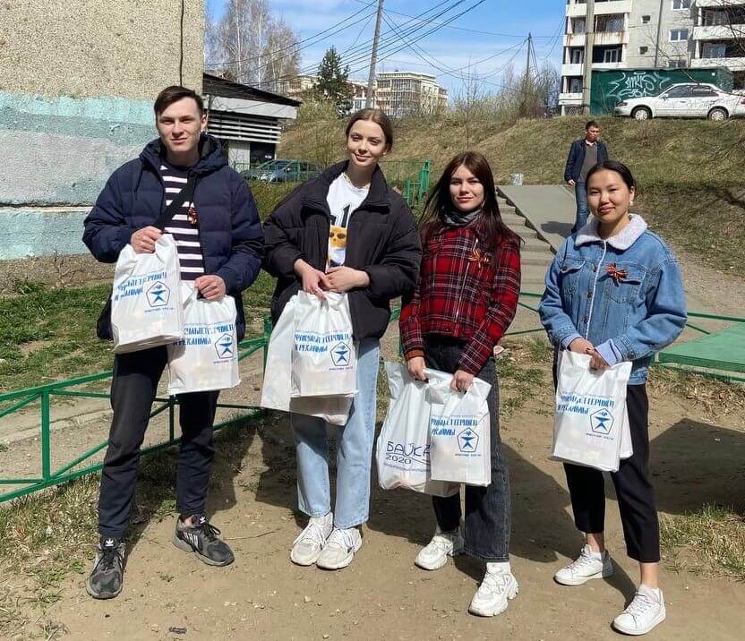 6 мая студенты направлений «Реклама и связи с общественностью и Управление персоналом» совместно с волонтёрским комитетом вручили памятные открытки, сделанные ранее воспитанниками Центра помощи детям, оставшимся без попечения родителей, Ленинского района г. Иркутска и продуктовые наборы ветеранам войны и труда микрорайона Университетского, а также лично выразили благодарность за мирное небо над головой, за победу в Великой Отечественной Войне.