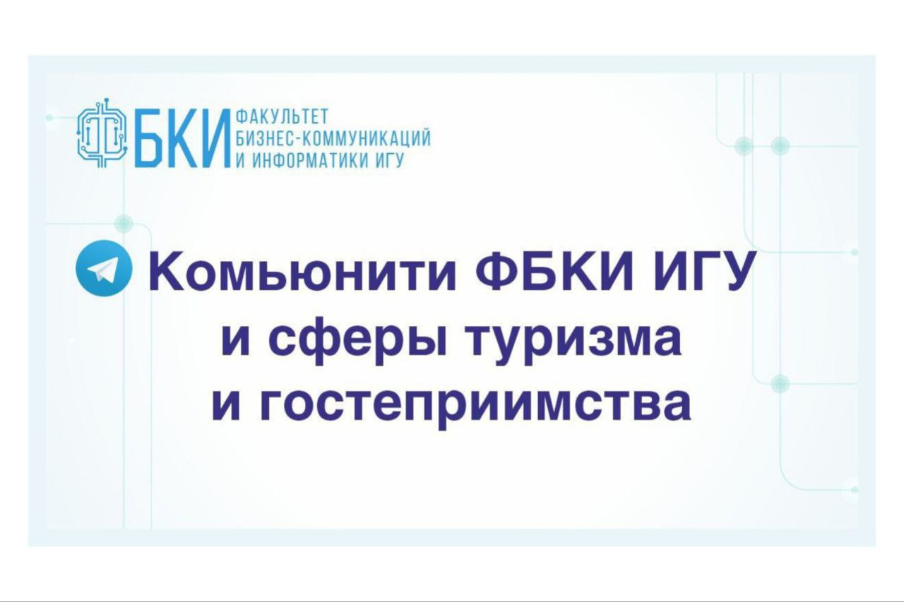 Телеграм-чат "Комьюнити ФБКИ ИГУ и сферы туризма и гостеприимства" создан по решению панельной дискуссии «Проблемы и перспективы подготовки кадров для индустрии туризма и гостеприимства», которая состоялась на факультете бизнес-коммуникаций и информатики ИГУ в рамках Международной научно-практической конференции "Туризм как ключевой фактор регионального развития" в апреле 2024 года.
