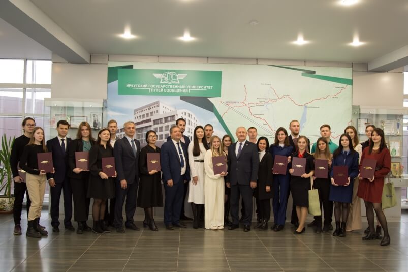 Торжественное событие прошло в зале Ученого совета ИрГУПС. Стипендиатов поздравили председатель фонда Елена Тен и руководители иркутских вузов, в том числе, ректор ИГУ Александр Фёдорович Шмидт.