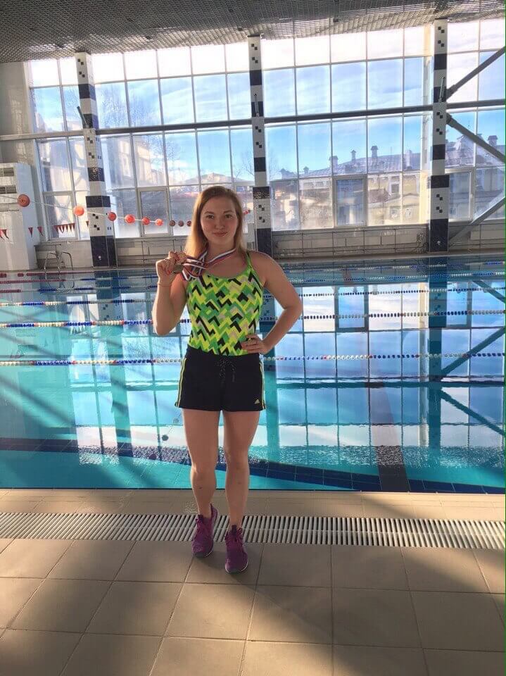 «Мама и папа были спортсменами, сейчас работают тренерами (мама по плаванию, а папа по самбо), поэтому с детства сразу было понятно, что дорога мне в спорт, а так как самбо больше для мальчиков, то пошла в плавание. С 3 лет бегала на тренировки, и вода мне была ближе. Так и выбрала плавание. Первые мои соревнования были, когда мне было 4 года. Помню, тогда вся семья пришла поболеть за меня, и тогда я выиграла свой первый заплыв. В этом году у меня юбилей: уже 15 лет я занимаюсь плаванием».