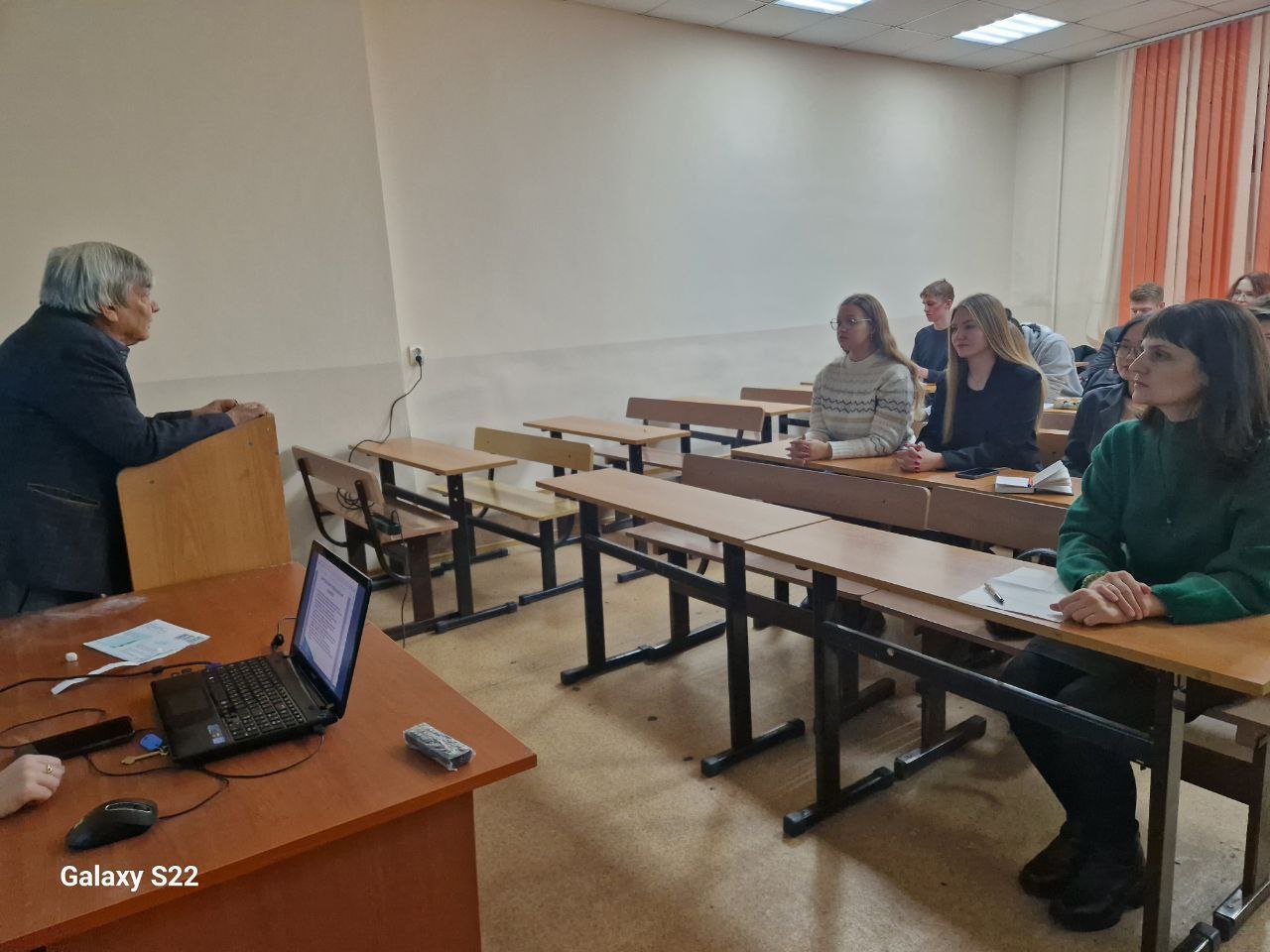 Открытую лекцию «Этнопсихология российско-сибирской семьи» доктора психологических наук, профессора института социальных наук ИГУ Александра Дмитриевича Карнышева посетили студенты 2 курса направления «Туризм» и ассистент кафедры туризма ФБКИ ИГУ Наталья Геннадьевна Радзион