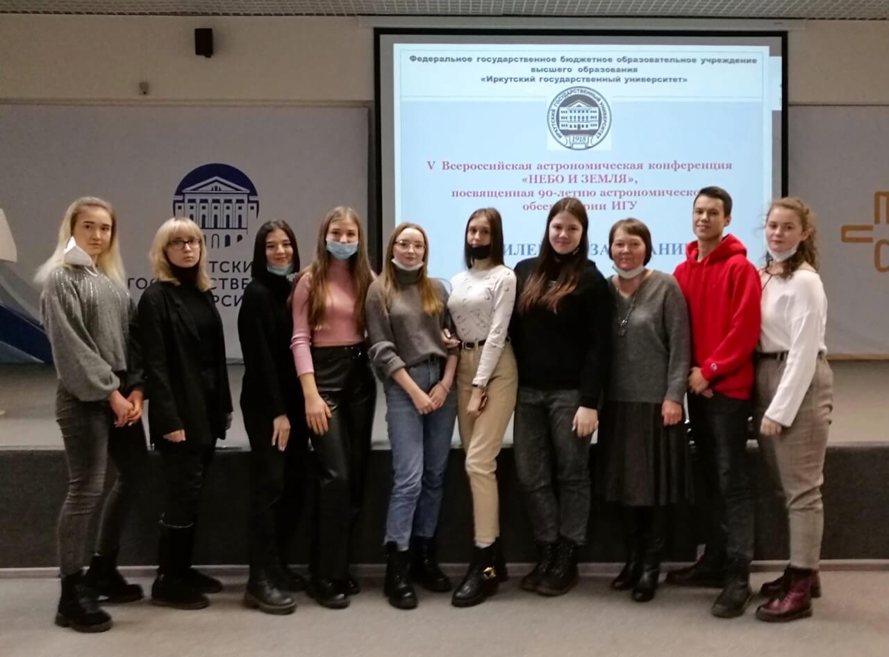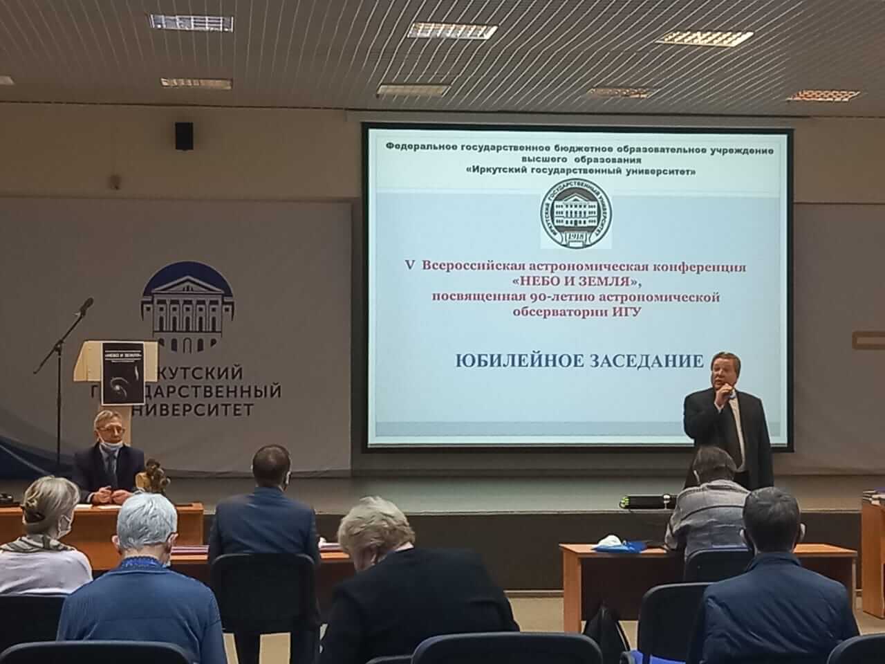 Студенты и преподаватели ФБКИ направления подготовки «Туризм» приняли участие в V Всероссийской астрономической конференции «Небо и Земля», посвященной 90-летию астрономической обсерватории Иркутского государственного университета. Конференция прошла 23−25 ноября 2021 года в Иркутске с участием гостей из ведущих научных и образовательных центров России. Результаты своих научных исследований и практического опыта представили очно и заочно более 50 участников, живущих и работающих в Москве, Санкт-Петербурге, Подольске, Рязани, Самаре, Снежинске, Черноголовке, Ярославле, Омске, Новосибирске, Иркутске и Ангарске. Организаторами и партнерами конференции выступили Иркутский государственный университет, Международная общественная организация «Астрономическое общество», Министерство образования Иркутской области, Институт солнечно-земной физики СО РАН. В ходе конференции прошли пленарные заседания, включая юбилейное заседание 23 ноября, и сессии по научным направлениям, отражающим основные направления деятельности астрономической обсерватории ИГУ, издан сборник материалов конференции. Также участники посетили крупнейший в России стационарный школьный планетарий с куполом диаметром 11 м на базе иркутской школы № 19. Третий день конференции был посвящен экскурсии в Байкальскую астрофизическую обсерваторию Института солнечно-земной физики СО РАН (БАО), расположенную на берегу Байкала в поселке Листвянка. Обсерватория отличается прекрасными астроклиматическими характеристиками благодаря стабилизирующему влиянию на воздушную среду большой акватории озера. В БАО находится уникальный большой солнечный вакуумный телескоп (БСВТ), который был построен в 1980 году, и сейчас является самым большим в Евразии. С его помощью сотрудники Байкальской астрофизической обсерватории проводят исследования солнечной активности, солнечных магнитных полей и разрабатывают новые методы прогнозирования «погоды» на Солнце. С обзорной площадки БСВТ открывается живописная панорама на южное побережье Байкала. Гостям Иркутска была предоставлена возможность последующей двухдневной поездки в обсерватории Тункинской долины (Республика Бурятия). Саянская обсерватория находится в предгорье Саянских гор на высоте около 2000 метров над уровнем моря, отсюда открывается вид на озеро Хубсугул (Монголия). Расположение обсерватории в горах вызвано спецификой задач, требующих высокой прозрачности земной атмосферы для поляризационных измерений и наблюдений солнечной короны, измерения магнитных полей и др. Открытие конференции и юбилейное заседание состоялось в Научной библиотеке ИГУ им. В.Распутина, где с приветственным словом и поздравлением выступил ректор ИГУ, профессор Александр Федорович Шмидт.
