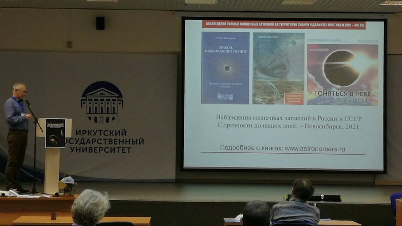 Директор астрономической обсерватории ИГУ, ведущий научный сотрудник НИИ прикладной физики ИГУ, старший научный сотрудник Института солнечно-земной физики СОРАН, доктор физико-математических наук, профессор ИГУ Сергей Арктурович Язев посвятил первый доклад страницам истории, основным итогам работы обсерватории и перспективам дальнейшего развития. Состоялся предпремьерный показ нового фильма Иркутского областного кинофонда «130 мм до космоса», посвященного историческому иркутскому телескопу-рефрактору, который представила заместитель директора кинофонда Е.В. Утробина Своими впечатлениями от участия в конференции поделились студенты группы 14 271 направления подготовки «Туризм». Маргарита Поднебесова рассказала: — В байкальском регионе проводится много научных исследований в рамках российских и мировых научных астрономических проектов. И мы в этом убедились, познакомившись с программой конференции и географией места работы прибывших на конференцию участников.