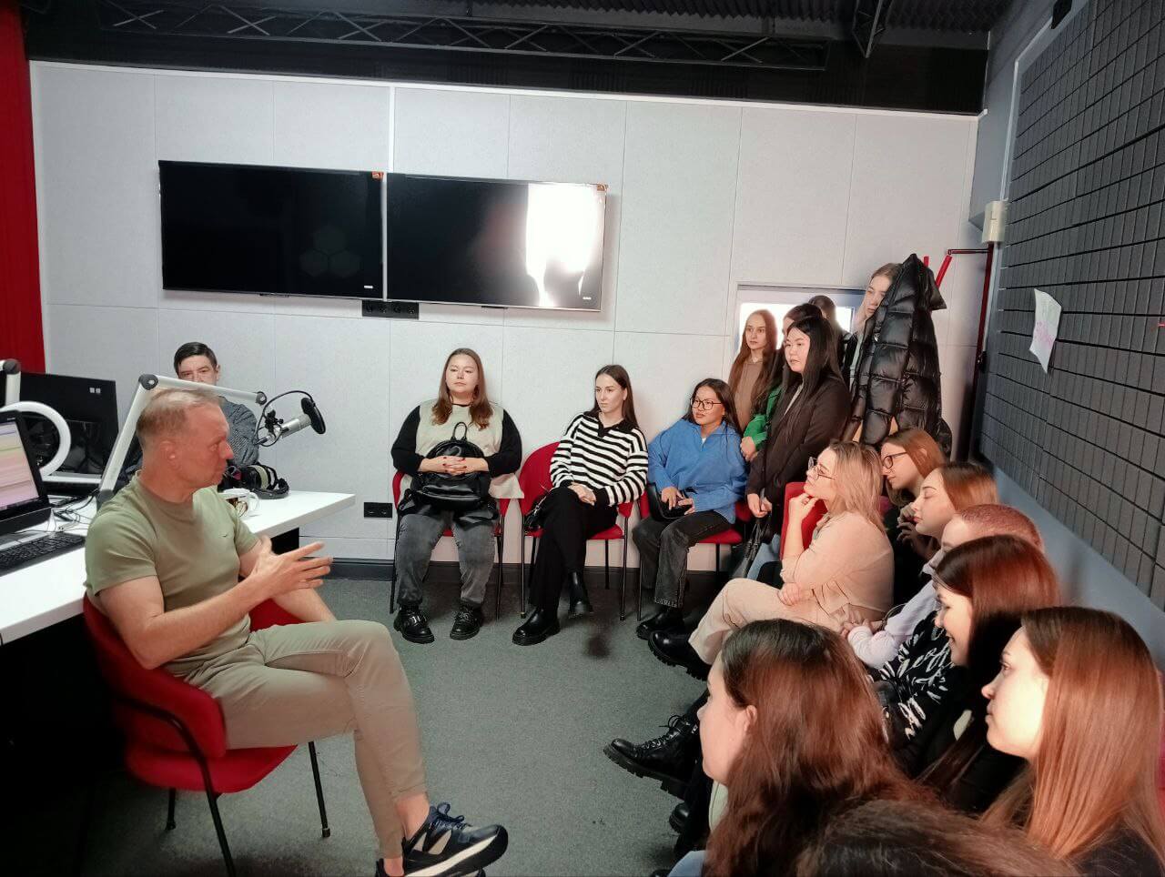 Программный директор и радиоведущий Иван Вильчинский рассказал ребятам об особенностях и основных проблемах региональной радиостанции, о принципах работы на радио, организации взаимодействия со слушателями и рекламной деятельности. Студентов также интересовали вопросы про целевую аудиторию, рекламодателей, стоимость размещения рекламы на радио.