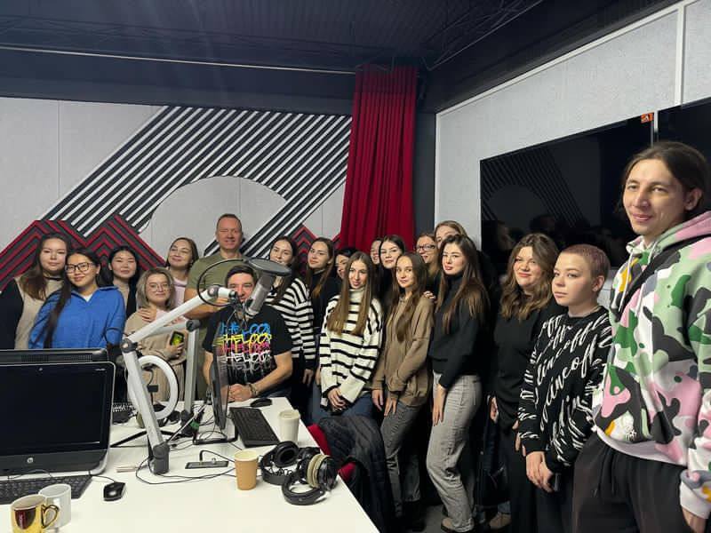 Особый восторг у ребят вызвало включение в прямой эфир, которое продемонстрировал Иван совместно с радиоведущим Игорем Антоновым. Четверокурсники также познакомились с еще одной медиаперсоной: в студию заглянул Игорь Бялоус (Малыш Гарри). В завершение встречи радийщики пожелали будущим рекламистам и пиарщикам стать настоящими профессионалами.