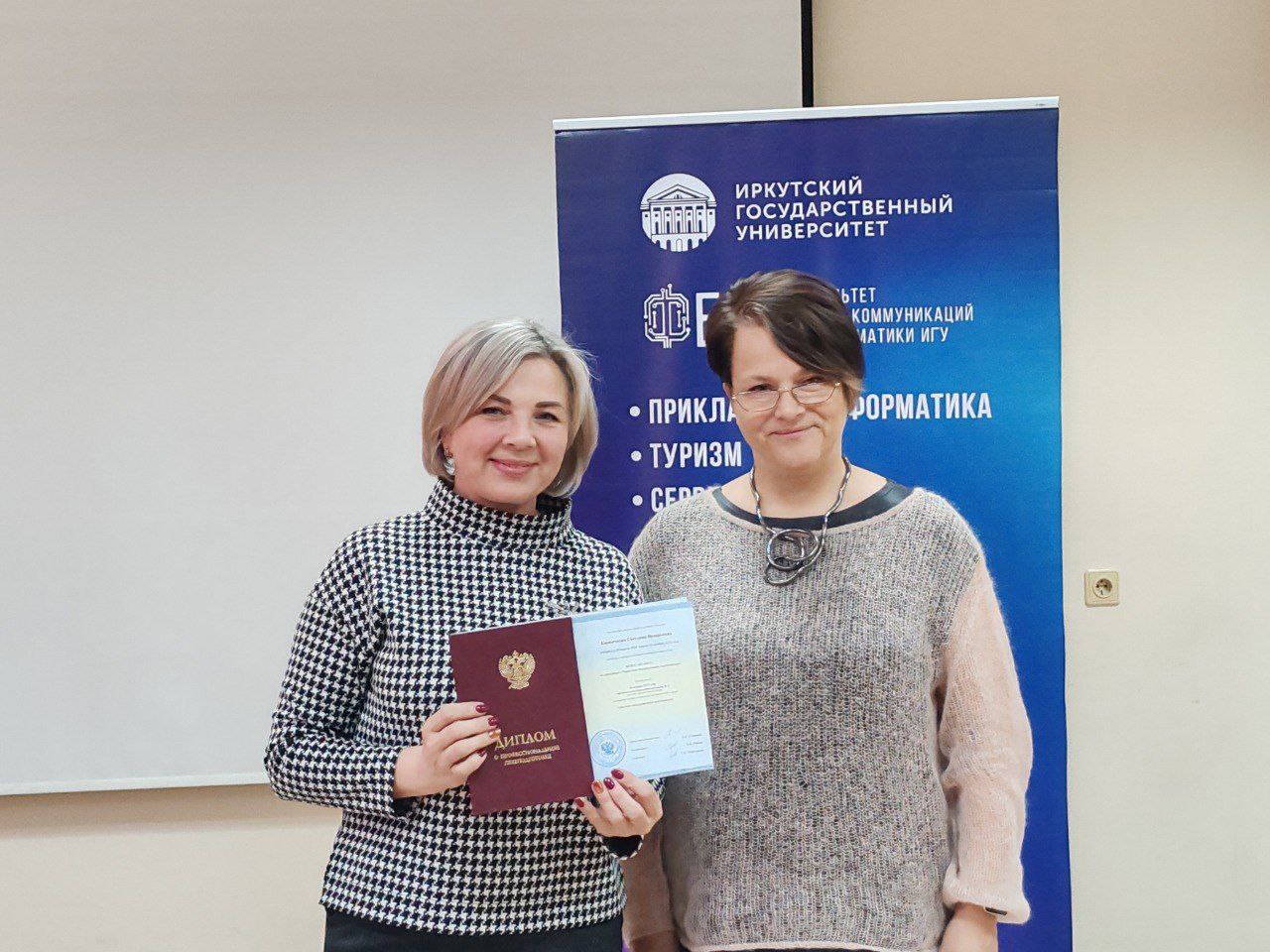 Вручение дипломов о профессиональной переподготовке слушателям третьего потока программы «Туристско-экскурсионная деятельность» состоялось на ФБКИ ИГУ.