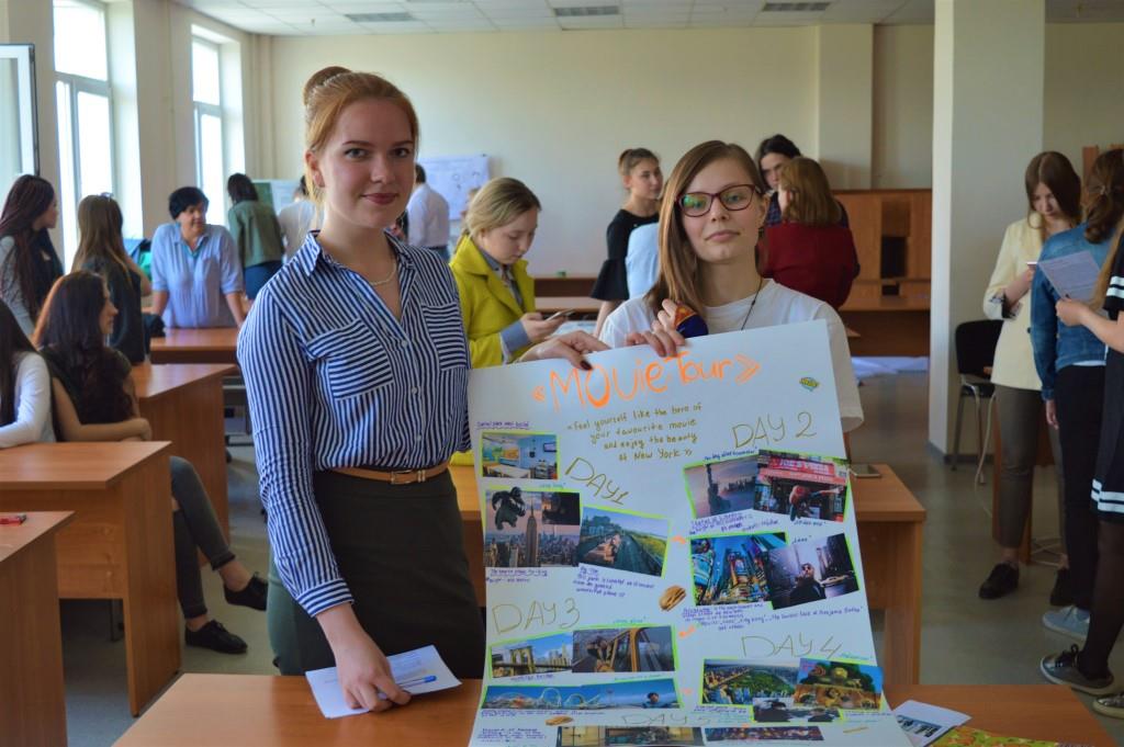17 мая в библиотеке имени В.Г. Распутина прошла ярмарка проектов, участие в которой принимали студенты факультета сервиса и рекламы ИГУ. Задача студентов заключалась в том, чтобы создать проект об одном из штатов США, его достопримечательностях, фактах, культуре, а также ответить на вопросы от членов жюри и посетителей мероприятия. Представить работу жюри, в составе которого были Клаудия Лар, преподаватель-стажёр из США, которая работает на нашем факультете с сентября 2017 г.; преподаватели иностранного языка нашего факультета Елизавета Васильевна Подкаменная, и Любовь Сергеевна Клетнова, а также гость мероприятия, преподаватель английского языка из США Оливер Окун, который в течение этого учебного года работает в качестве преподавателя-стажера в ИФИЯМ. Главная особенность ярмарки состояла в том, что свои проекты участники должны были представлять исключительно на английском языке. Проекты оценивались по следующим критериям: грамматика, креативность, отклик у аудитории, понятность сообщения, презентационные навыки, качество презентации, при этом учитывался не только сам материал, но и его представление и взаимодействие выступающих с аудиторией. Также членами жюри оценивалась оригинальность материала, она являлась достаточно важным критерием для оценки проекта, и за плагиат снималось определённое количество баллов. В зависимости от направления, на котором обучаются участники, задавался формат представления проекта и его содержание. Студентам направления «туризм» была поставлена задача разработать специализированную экскурсию по выбранному штату, посвящённую любой интересующей студентов теме: история, музыка, природа и рассказать, чем их привлекла эта тема. Обучающиеся на направлении «прикладная информатика» должны были разработать интерактивную технологию, веб-сайт, карту, игру, относящуюся к штату. Студенты направления «сервис» раскрывали в своих проектах культуру штата в целом, его особенности, уникальные аспекты в сфере музыки, присущей ему, популярных занятиях, предпочтениях в еде — любых интересных характерных чертах штата. Во время проведения ярмарки участники получили ценный опыт, разговорную практику и просто хорошо провели время.