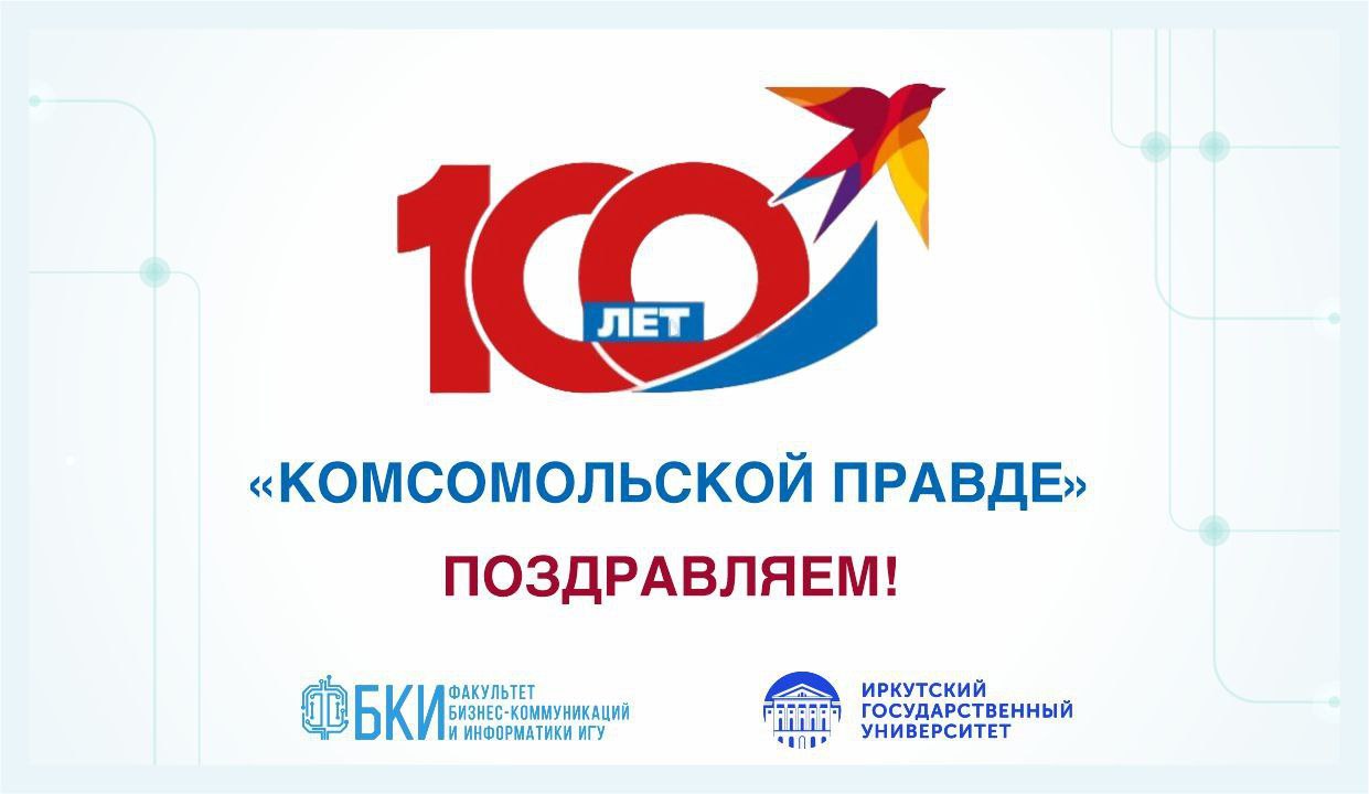 Со 100-летием газеты «Комсомольская правда» поздравляем иркутский филиал «Комсомолки» и лично генерального директора, доктора исторических наук, заведующего кафедрой массовых коммуникаций и мультимедиа ФБКИ ИГУ Станислава Иосифовича Гольдфарба!