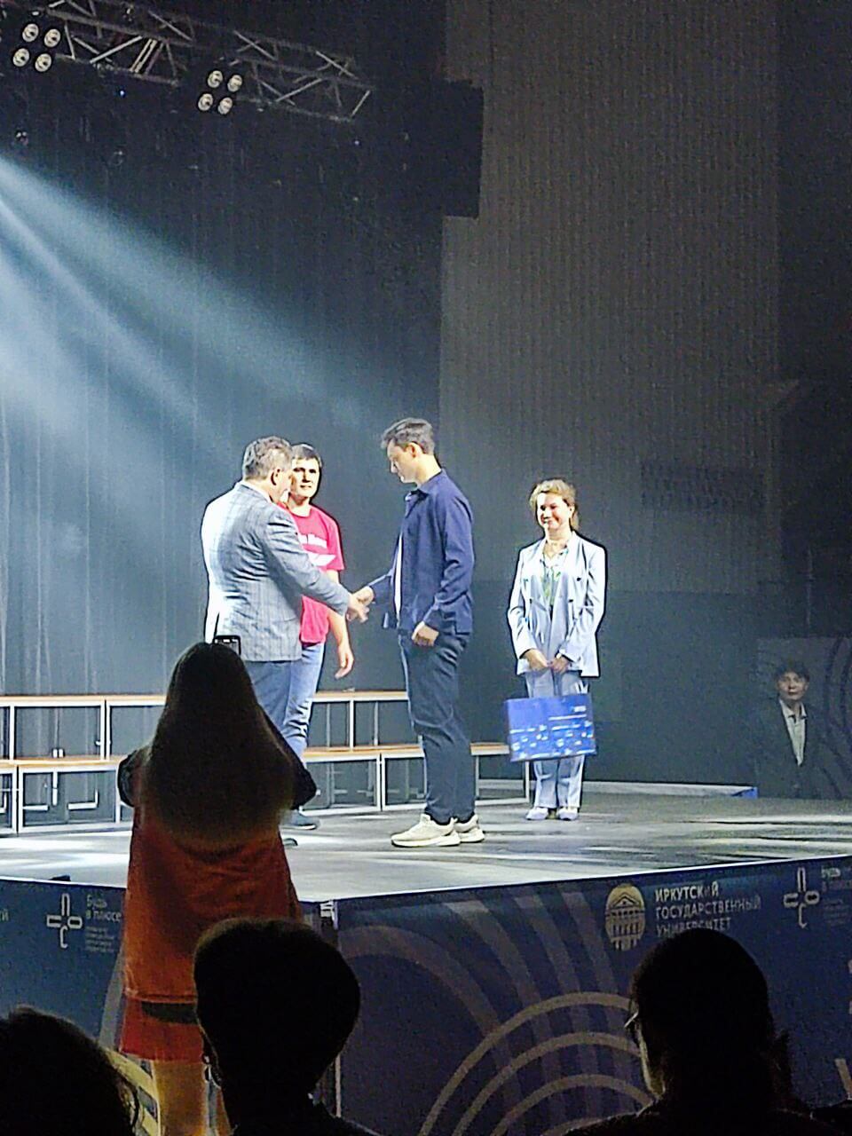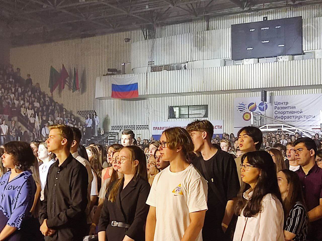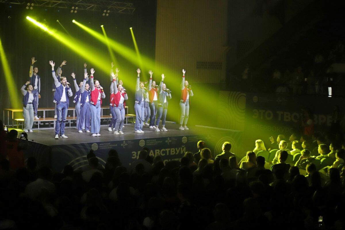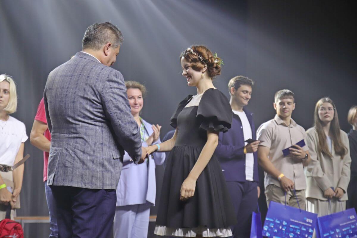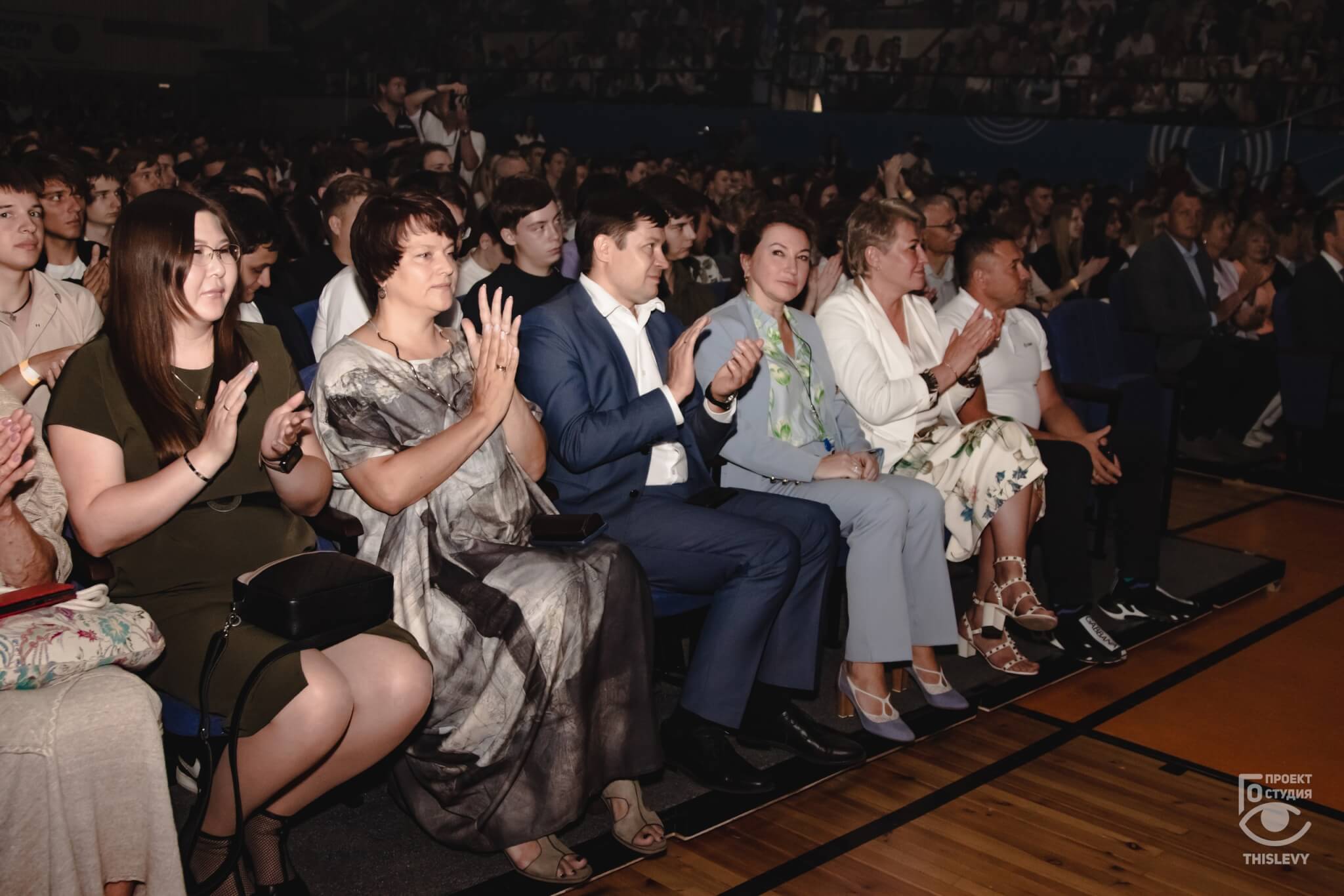 Ректор представил первокурсникам руководителей институтов и факультетов. Новоиспеченных студентов поздравили гости — заместитель председателя Правительства Иркутской области Георгий Кузьмин, генеральный директор АО «ИНК-Капитал» Марина Седых и представители банков: Байкальского банка ПАО «Сбербанк», РООО «Иркутский» банка ВТБ, Альфа-Банка в Иркутской области. Также с началом студенческой жизни ребят поздравил председатель первичной профсоюзной организации студентов ИГУ Владислав Сметанин. В торжественной обстановке ректор вручил студенческие билеты участникам СВО, победителям всероссийских олимпиад и 100-балльникам. Среди них — три первокурсника факультета бизнес-коммуникаций и информатики. Георгий Воловиков и Ярослав Степанов — победители Национальной технологической олимпиады, Алексей Тарасов получил 100 баллов на ЕГЭ по русскому языку. Первокурсники дали клятву студента, и впервые для них прозвучал студенческий гимн «Гаудеамус», созданный много веков назад. На мероприятии выступали творческие коллективы ИГУ, работали фотозоны, интерактивные площадки, демонстрирующие яркую студенческую жизнь Иркутского государственного университета. Первый день учебного года стал настоящим праздником для ребят, вступающих в новый этап жизни. Фото Проект-студия ГОС, Управление информационной политики ИГУ, Таисия Селезнева.