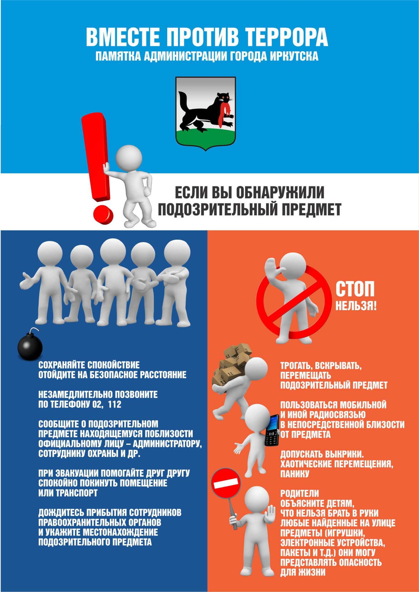 — не нарушать (не трогать, не перемещать, не открывать, не развязывать и т.д.) целостность обнаруженных предметов, не предпринимать самостоятельных мер по их обезвреживанию;