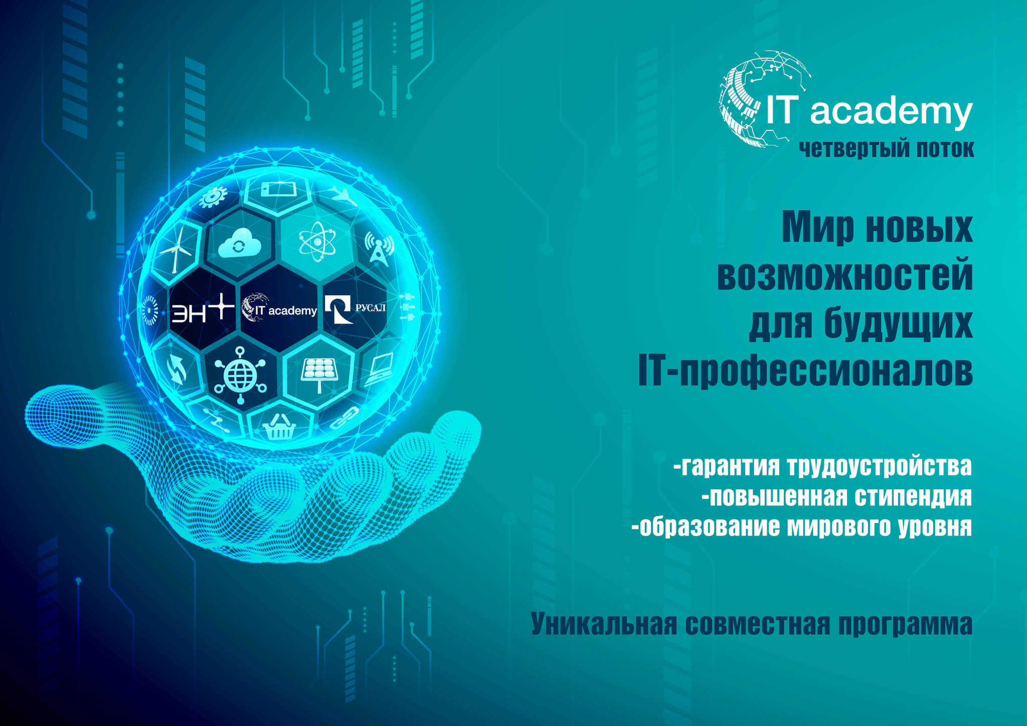 СПРАВКА: Академия ИТ — это программа дополнительной подготовки студентов, специализирующихся на информационных технологиях, для ОК «РУСАЛ» и Эн+ на базе Иркутского национального исследовательского технического университета, Сибирского федерального университета, Братского государственного университета и Иркутского государственного университета. Проект предусматривает усиленную специализированную программу обучения, сформированную с помощью экспертов компаний.