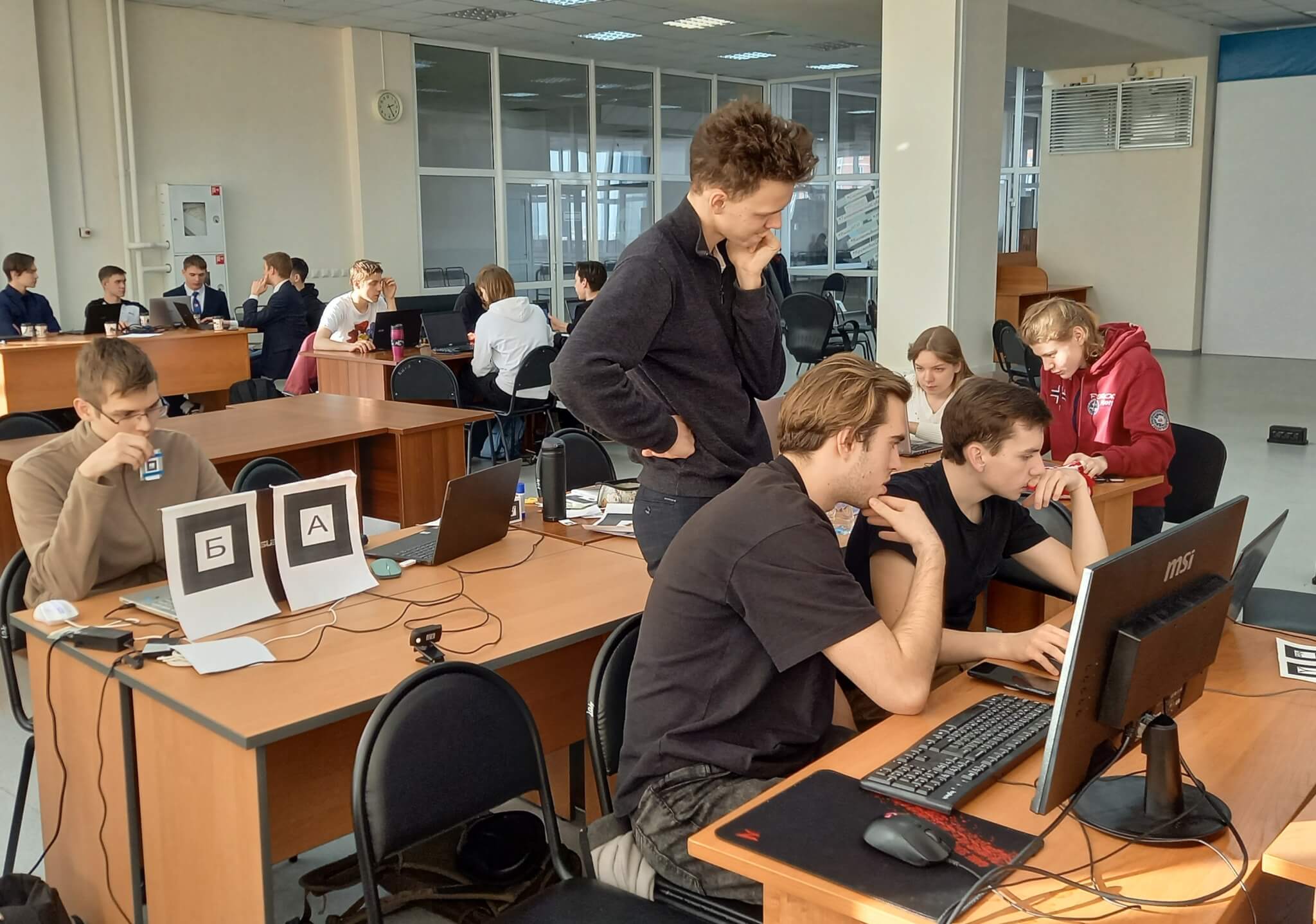 Один из членов жюри, Мария Александровна Сокольская, отметила высокий уровень технического исполнения проектов. Ребята умеют разворачивать клиент-серверную архитектуру, тестировать приложения, у большинства команд концепции были цельными. Это объяснимо — хакатон пользуется популярностью и часть команд («Кибербуллинг», «ПельMEon») участвует в нём не первый год. Очный формат позволяет ребятам вживую сплотиться в команде, для некоторых из них это — важный этап подготовки к финалу Национальной технологической олимпиады. Традиционным стало участие команд из лицея ИГУ, лицея № 2, лицея № 1, Точки будущего и 64-й школы. Поздравляем победителей и призеров хакатона «Технологии дополненной реальности»: 1 место — команда «Exception», лицей № 2: Кирилл Березин, Лаврентий Наумов, Артём Холодилов, Роман Коваль, Егор Даурцев. 2 место — команда «ПельMEON», лицей № 2: Иван Жовтый, Ярослав Степанов, Георгий Воловиков, Дмитрий Купряков, Ильдар Хамаганов. 3 место — команда «Гадалки», лицей ИГУ и гимназия № 2: Алёна Горбунова, Михаил Яцык, Анна Седова, Данила Кашкарев, Лаврентий Федчин, Эдуард Алексеенко. За дипломы и сертификаты участников начисляются дополнительные баллы при поступлении в вуз. Торжественное закрытие и награждение фестиваля «Иркутская компьютериада-2023» прошло 17 февраля в культурно-досуговом центре БГУ. Вузы-организаторы награждали своих победителей. Ректор ИГУ Александр Федорович Шмидт вручил ребятам из команды-победителя «Exception» подарки и сертификаты на бесплатное обучение в университете. Справка. Фестиваль «Иркутская компьютериада» — это традиционная площадка для профориентации направлений IT-сферы, в этом году в нем приняли участие около трех тысяч ребят. Учредитель фестиваля — Департамент образования комитета по социальной политике и культуре администрации города Иркутска. Организаторы — информационно-методический центр развития образования, лицей № 1 и вузы Иркутска. Иван Петрушин, доцент кафедры естественнонаучных дисциплин ФБКИ ИГУ, Фото Иван Петрушин, Максим Арзаев