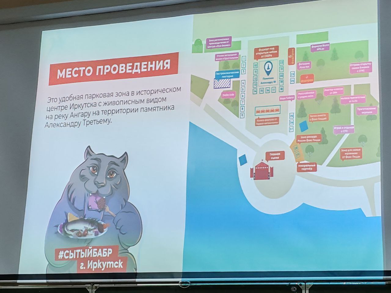 Елена рассказала об особенностях мероприятий в нашем регионе на примере организации фестиваля "Сытый бабр". Ребята узнали, как ставить цель, выбирать локацию для мероприятия, взаимодействовать со спонсорами, партнерами и администрацией города.