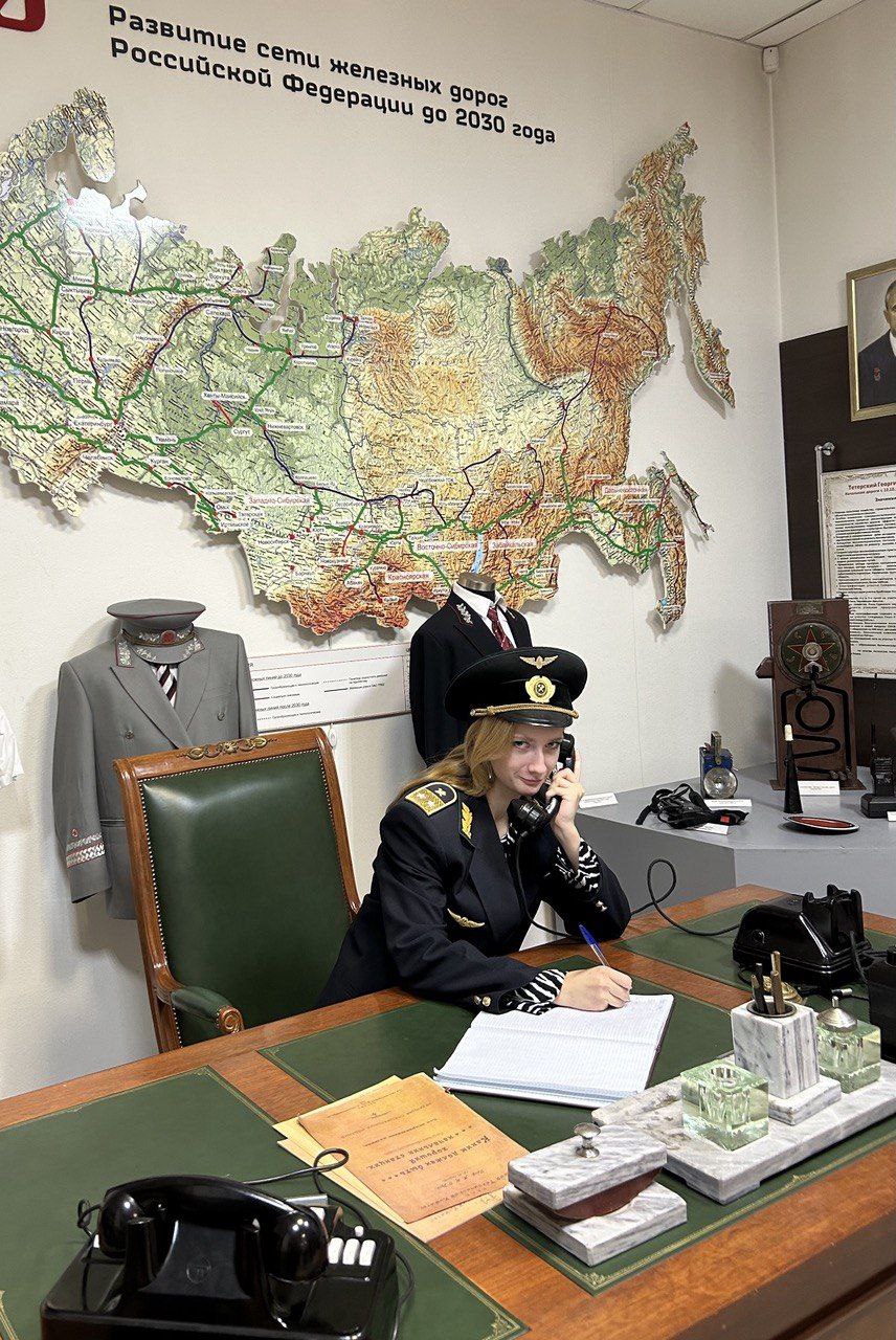 В зале новейшей истории ВСЖД, ребята узнали о трудовых и боевых подвигах людей, связанных с этой железной дорогой. А в экспозиции интерьера кабинета начальника ВСЖД они даже примерили форму и позвонили по служебному телефону.