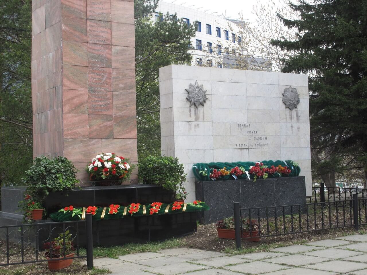 5 мая в учебном корпусе № 6 Иркутского государственного университета состоялось торжественное возложение цветов к монументу славы погибшим в годы Великой Отечественной войны. На монументе славы выбиты имена студентов и преподавателей нашего университета, погибших на войне. Почтить память героев войны собрались студенты и сотрудники факультета сервиса и рекламы, географического и химического факультетов, юридического института.