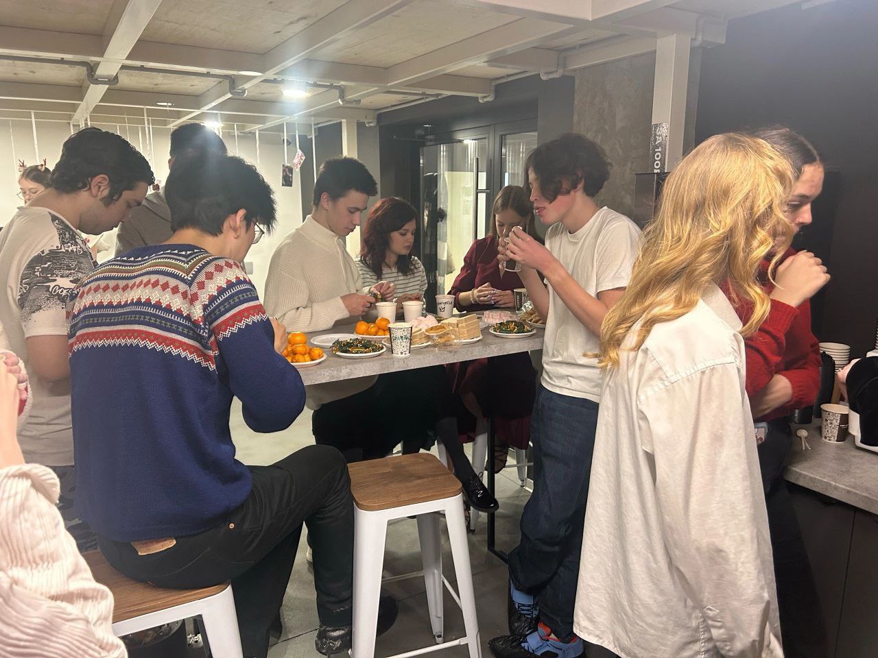 Самое уютное событие года студенты провели с горячим какао и веселыми интерактивами. Каждый нашел себе занятие по душе: ребята делали новогодние открытки, елочки, поделки из бисера, писали письма в будущее, участвовали в квизе, играли в тайного Санту.