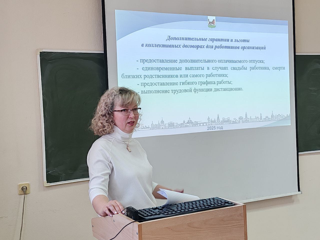 Студенты направлений "Управление персоналом" и "Сервис" в формате живого общения узнали о преимуществах официального трудоустройства, правах, обязанностях работников и гарантиях в соответствии с действующим законодательством в сфере труда.