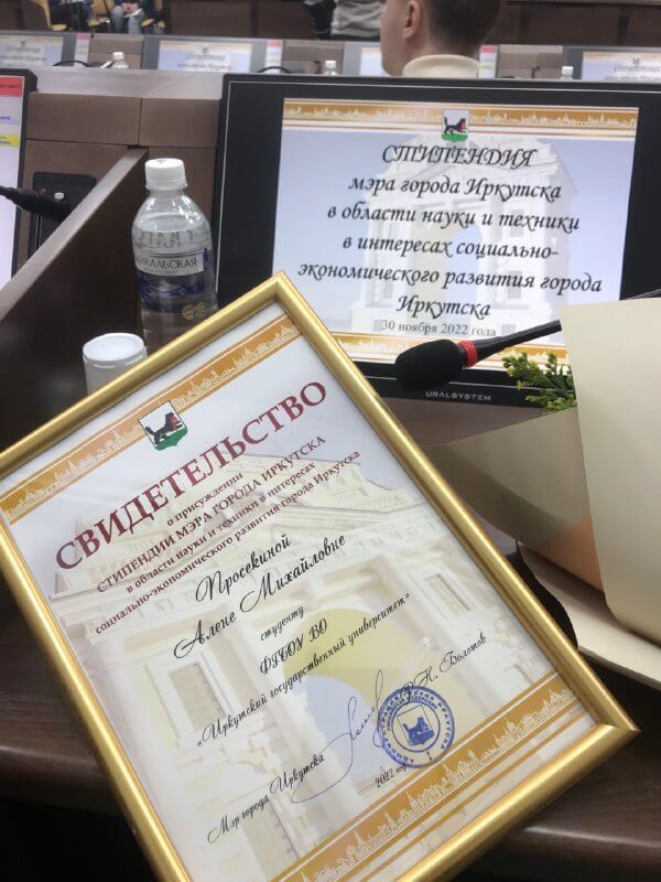 Стипендия присуждается за проведение научно-исследовательских работ, имеющих практическое значение для благоустройства и безопасности городской среды, жилищно-коммунального хозяйства, архитектуры и градостроительной политики, муниципального транспорта, потребительского рынка, культуры и молодежной политики, муниципальной системы образования, цифрового развития муниципалитета. Единовременную социальную поддержку размером 20 000 рублей получили шесть студентов и два аспиранта ИГУ — 25 000 рублей, а всего в этом году стипендиатами стали 25 студентов, аспирантов и молодых ученых.