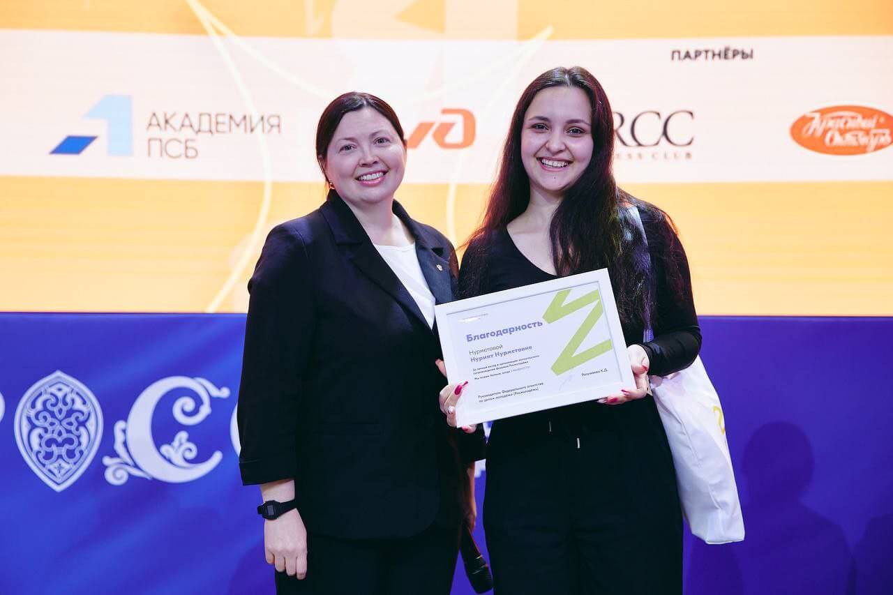 На стратегической сессии «Волонтерский корпус на форумах Росмолодежи» награждали лучших волонтеров, в числе которых оказалась и Нури — активистка нашего факультета, четверокурсница направления «Сервис».