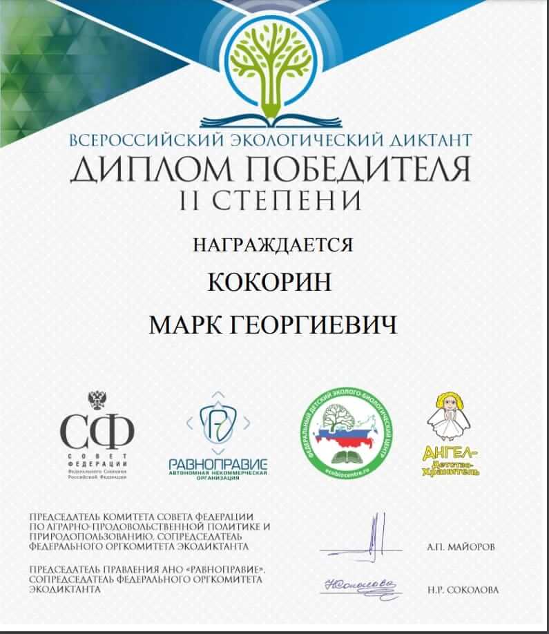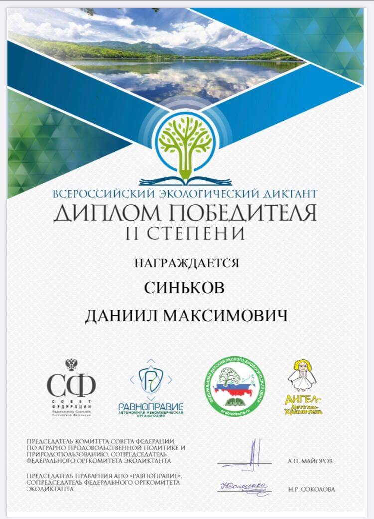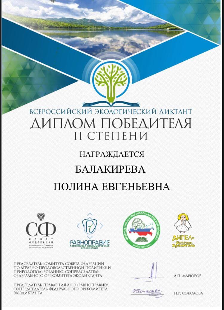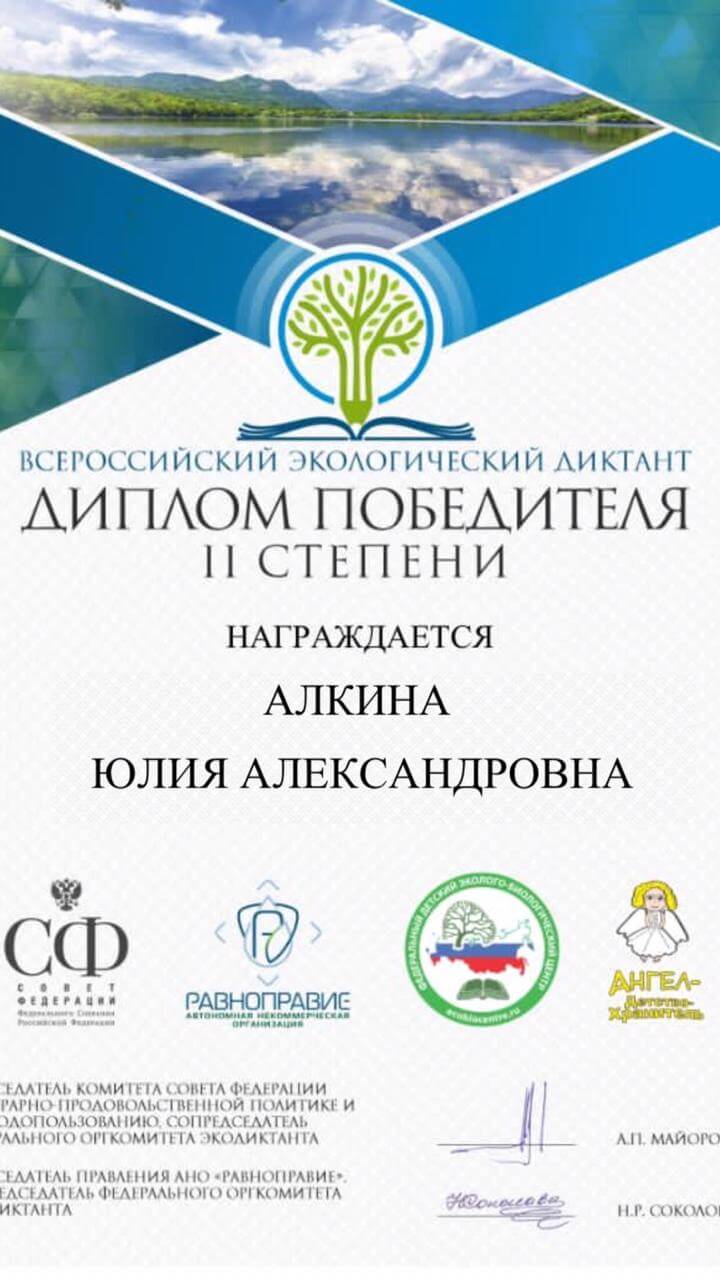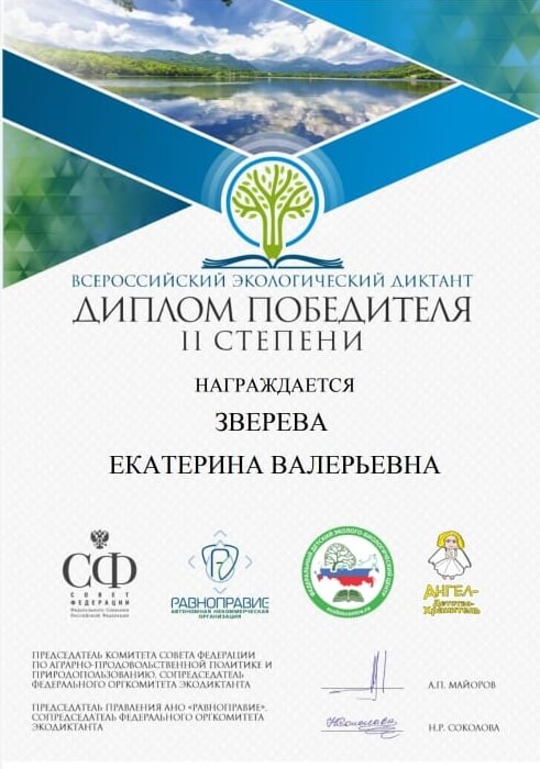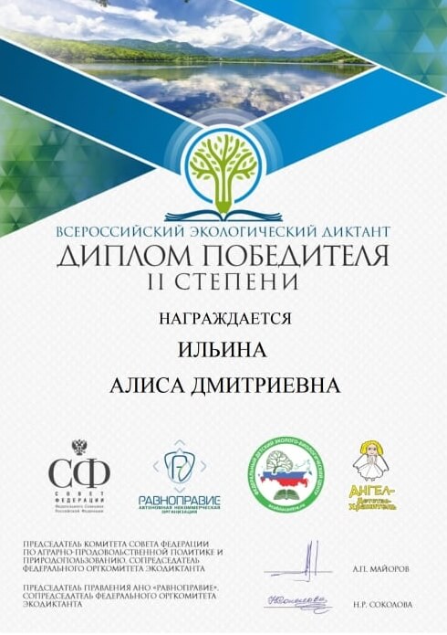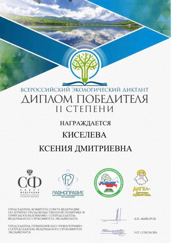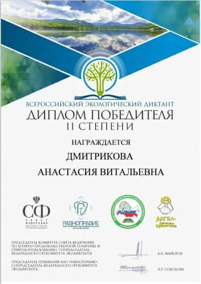 Призерами всероссийского экологического диктанта стали студенты нашего факультета Марк Кокорин, Алиса Ильина, Полина Балакирева, Юлия Алкина, Даниил Синьков, Екатерина Зверева, Ксения Киселева и Анастасия Дмитрикова. Все они получили дипломы II степени. Преподаватели кафедры туризма доценты Любовь Федоровна Матвеева и Наталья Сергеевна Панкеева отмечают, что ребята достойно показали степень владения знаниями по экологии биосферы, окружающей среды, антропогенному воздействию на современные экосистемы, проявили свои творческие способности и эрудицию. Всероссийский экологический диктант был задуман, чтобы способствовать формированию экологической культуры и распространению экологических знаний среди населения. В этом году он проходил в разных форматах (очном, онлайн и смешанном). Для участия нужно было зарегистрироваться на официальном сайте