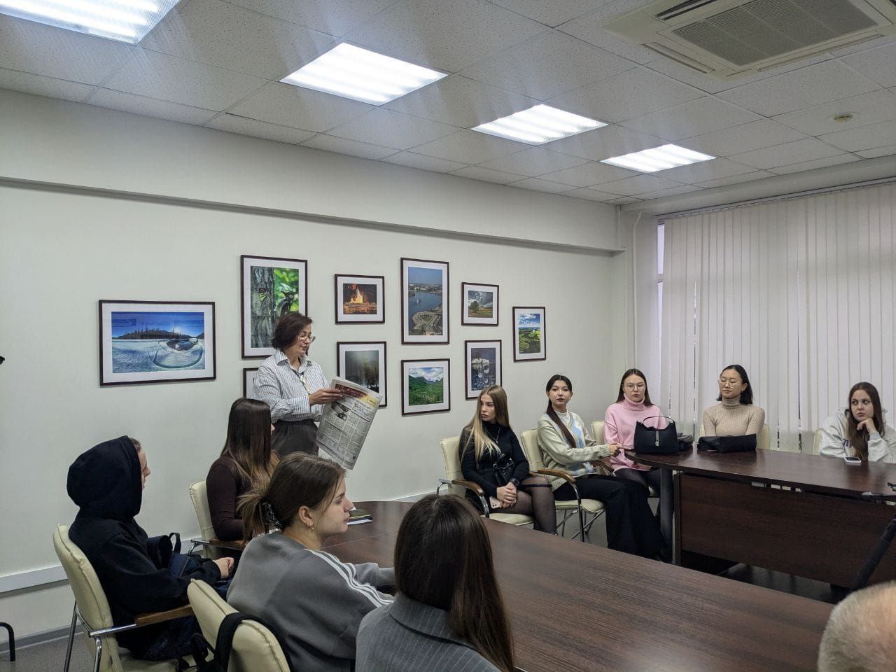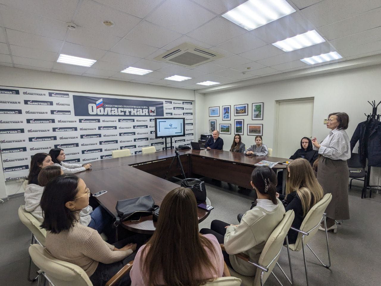 Сначала четверокурсники изучили работу редакции и сайт газеты «Областная». Главный редактор ОГАУ «Медиа-центр «Приангарье» Дмитрий Люстрицкий рассказал о развитии компании, ее роли в информационной среде региона, важности качественного контента.