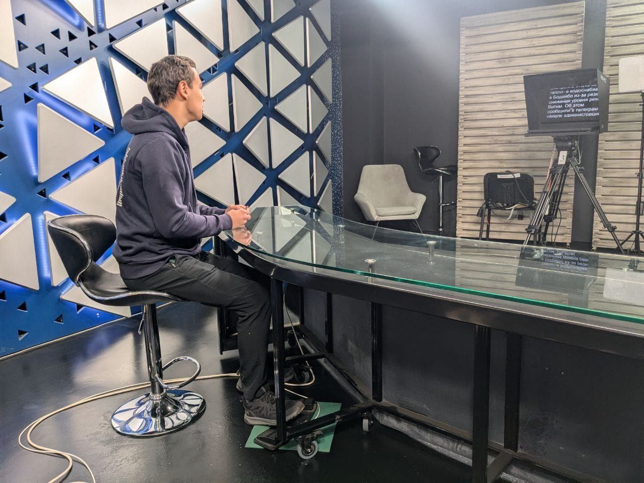 Далее ребята посетили редакцию телевещания. Вместе с заместителем главного редактора Натальей Ветровой осмотрели студии телекомпании «АИСТ», познакомились с современными медиатехнологиями, увидели процесс создания телепрограмм и попробовали себя в роли ведущего новостей.