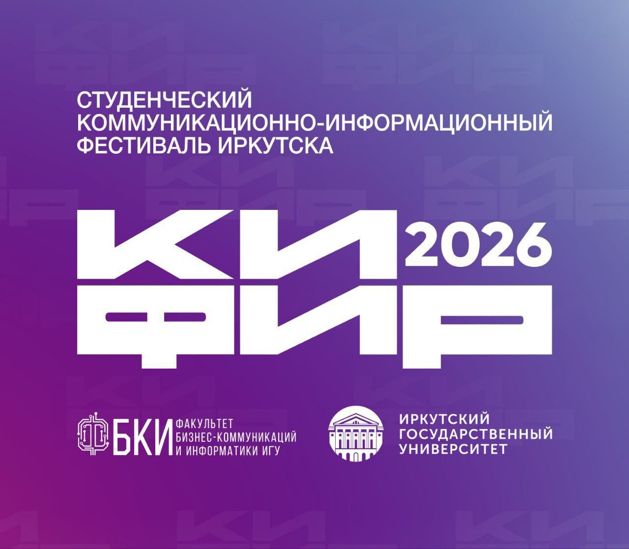 Традиционно II Студенческий коммуникационно-информационный фестиваль Иркутска «КифИР» пройдёт при поддержке Правительства Иркутской области и Администрации города Иркутска. А в этом году к нам присоединились Информационно-туристская служба города Иркутска и Министерство по молодёжной политике Иркутской области.