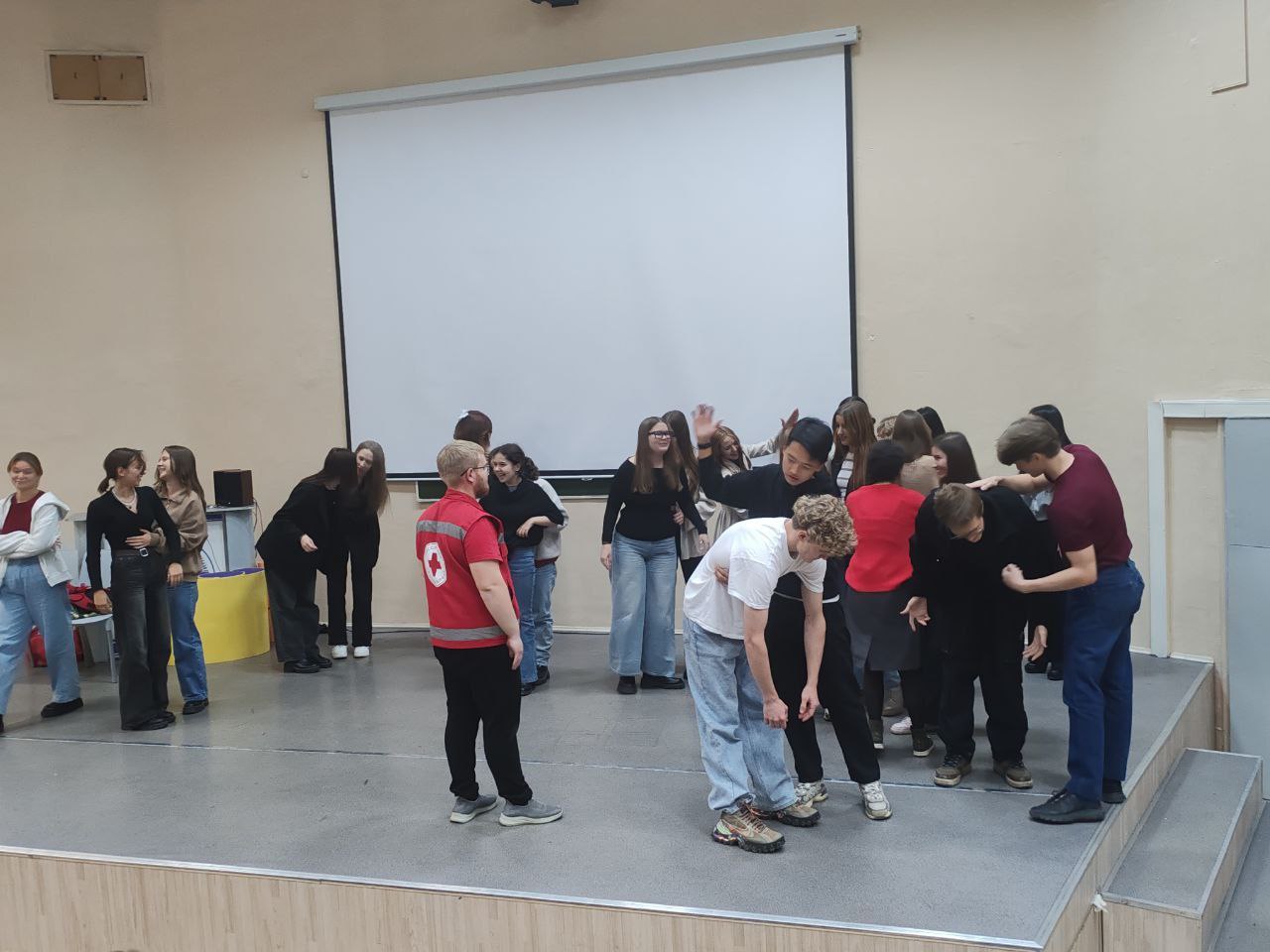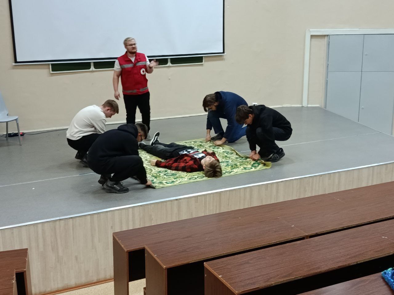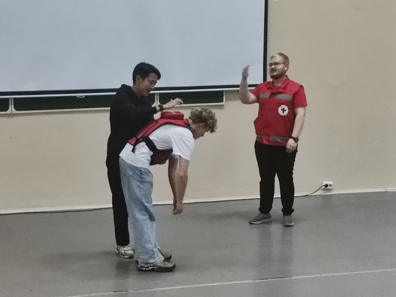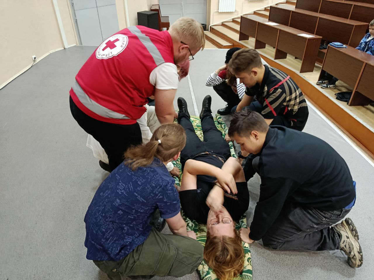 Первокурсники изучили алгоритм оказания первой помощи, проведение сердечно-легочной реанимации, приемы оказания первой помощи при инородном теле в дыхательных путях и при эпилепсии, способы плановой и экстренной эвакуации.