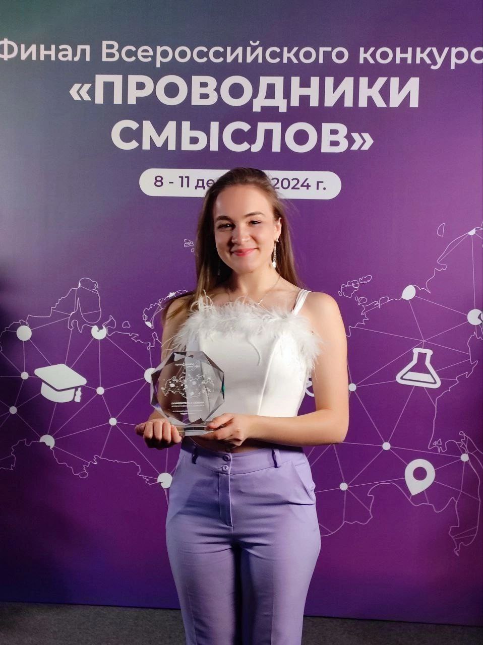 Итоги конкурса подвели в Мастерской управления «Сенеж» президентской платформы «Россия – страна возможностей». Из 400 полуфиналистов до финала дошло 100 лучших проектов. На церемонии награждения были объявлены 18 победителей. В их числе – Анастасия, представившая экскурсионную видеоигру "Байкальские сказки: Путь к Шаманскому сердцу", разработанную совместно с Владиславом Макеевым, магистрантом программы «Прикладная информатика». Игра в увлекательной форме знакомит участников с туристическими достопримечательностями Прибайкалья (доступна по ссылке)