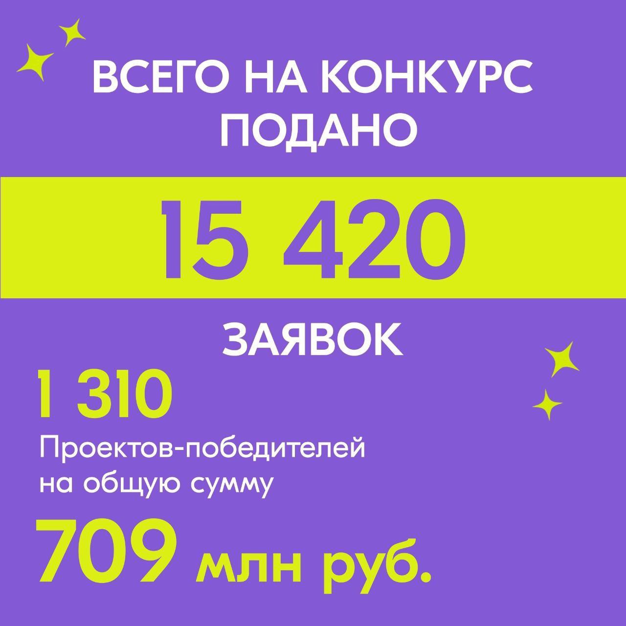 Всего в грантовом конкурсе участвовало 15 420 заявок из 89 регионов, а победителями стали 1310 проектов.