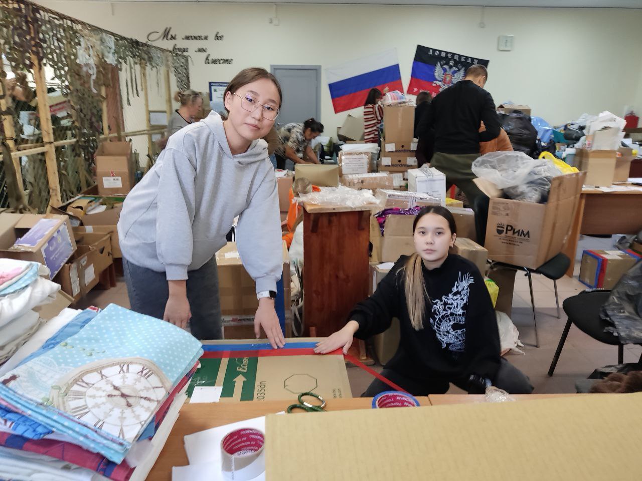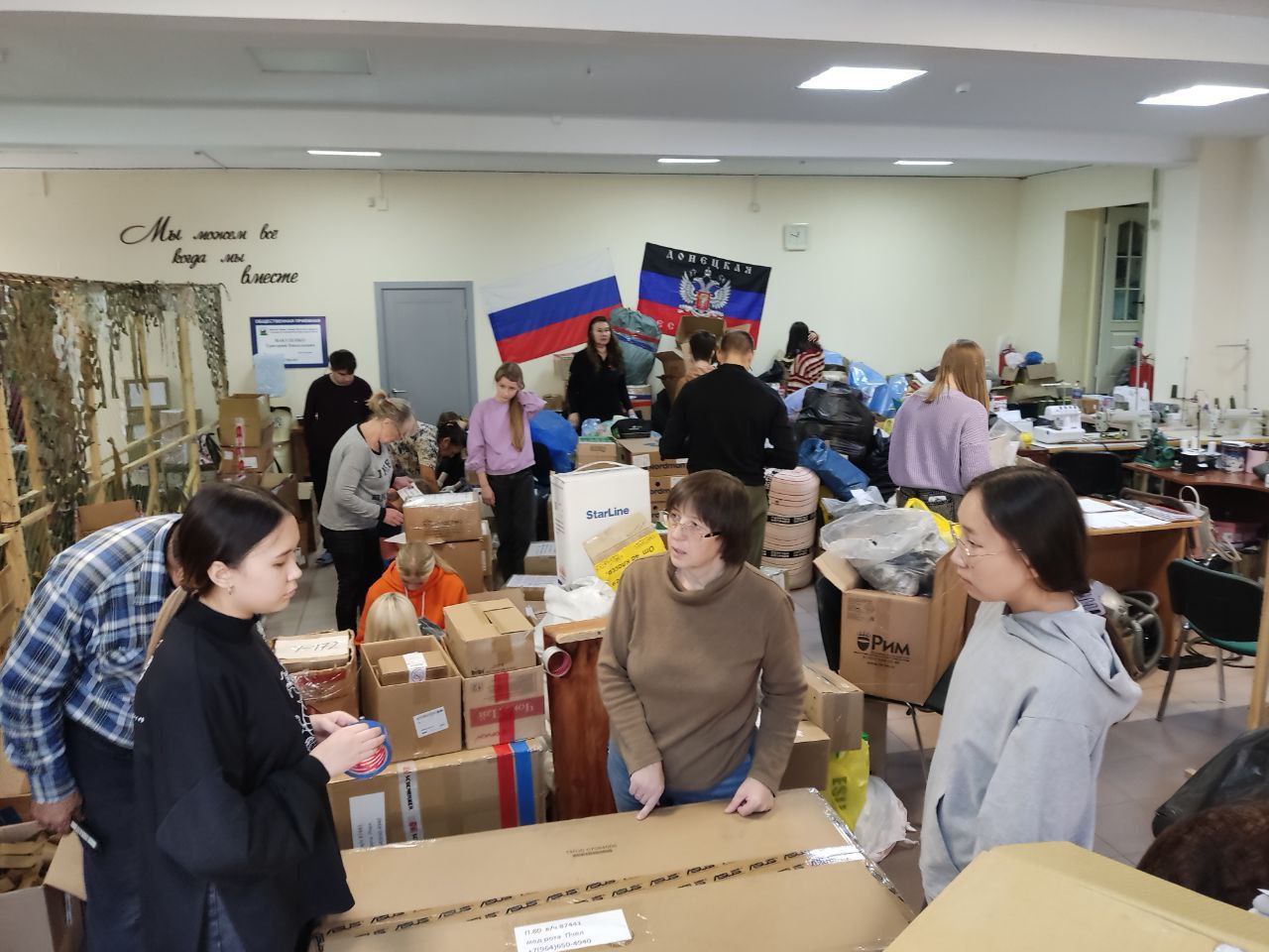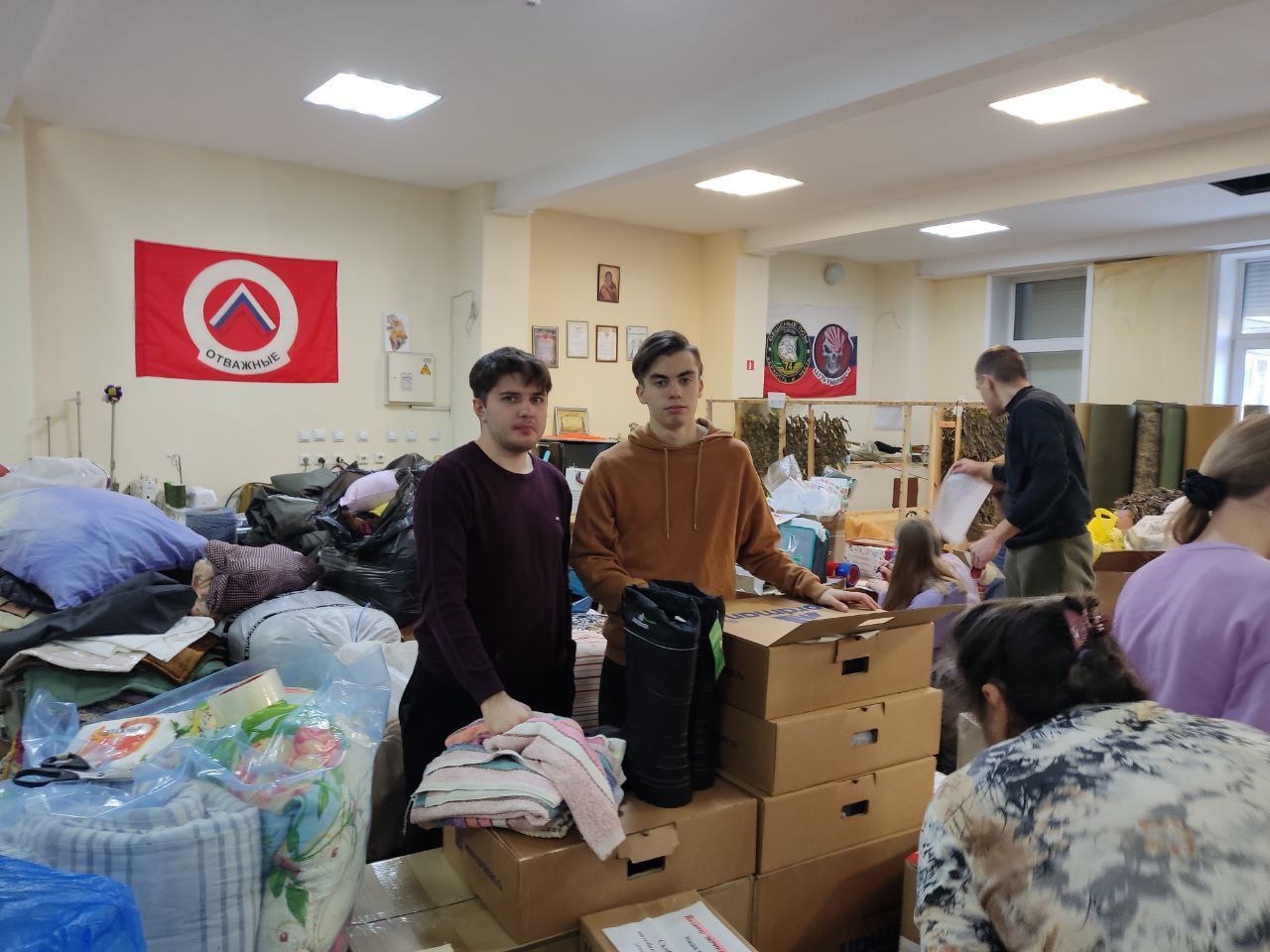 Буягма Гулугуева, Эльвира Семёнова, Пётр Храмовских, Евгений Тетенькин, Светлана Залит, София Бояркина — представители 4-х направлений нашего факультета вместе с другими неравнодушными людьми формировали и упаковывали необходимые вещи для участников СВО.