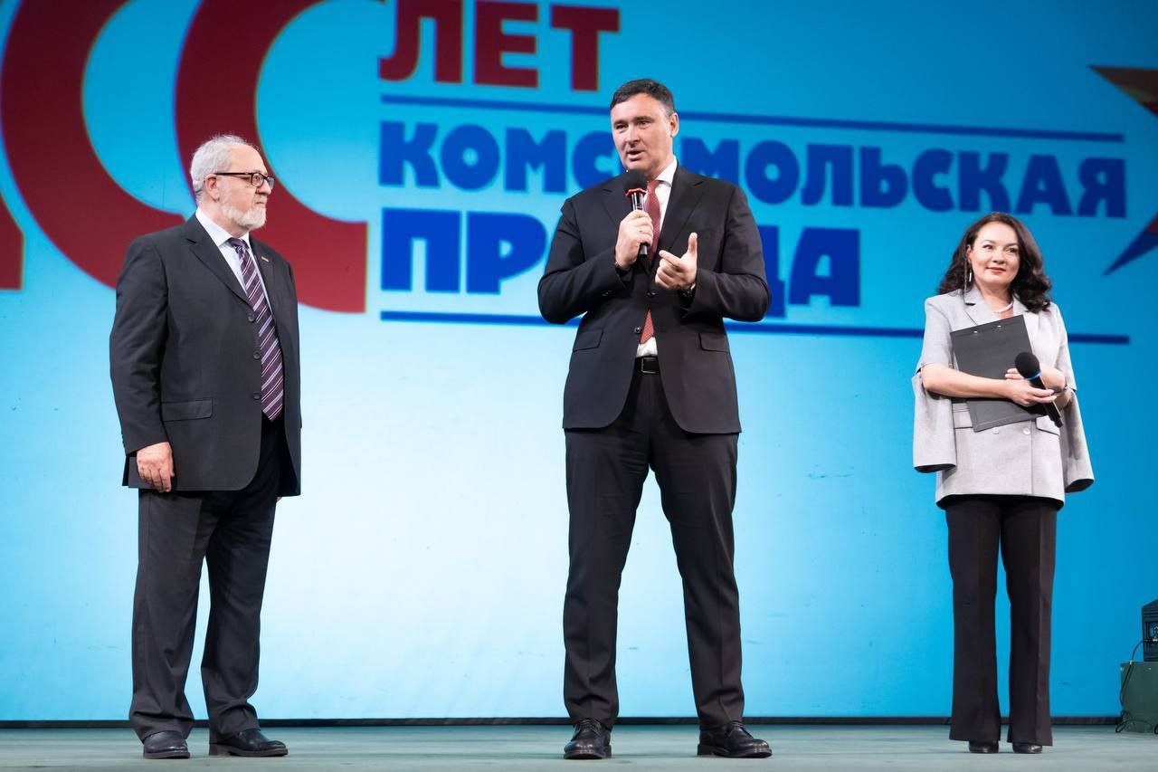 13 июня на сцене Драмтеатра им. Н.П.Охлопкова коллектив «Комсомолки» принимал поздравления от губернатора Иркутского области Игоря Кобзева, мэра города Руслана Болотова и заместителя председателя Законодательного собрания региона Кузьмы Алдарова.
