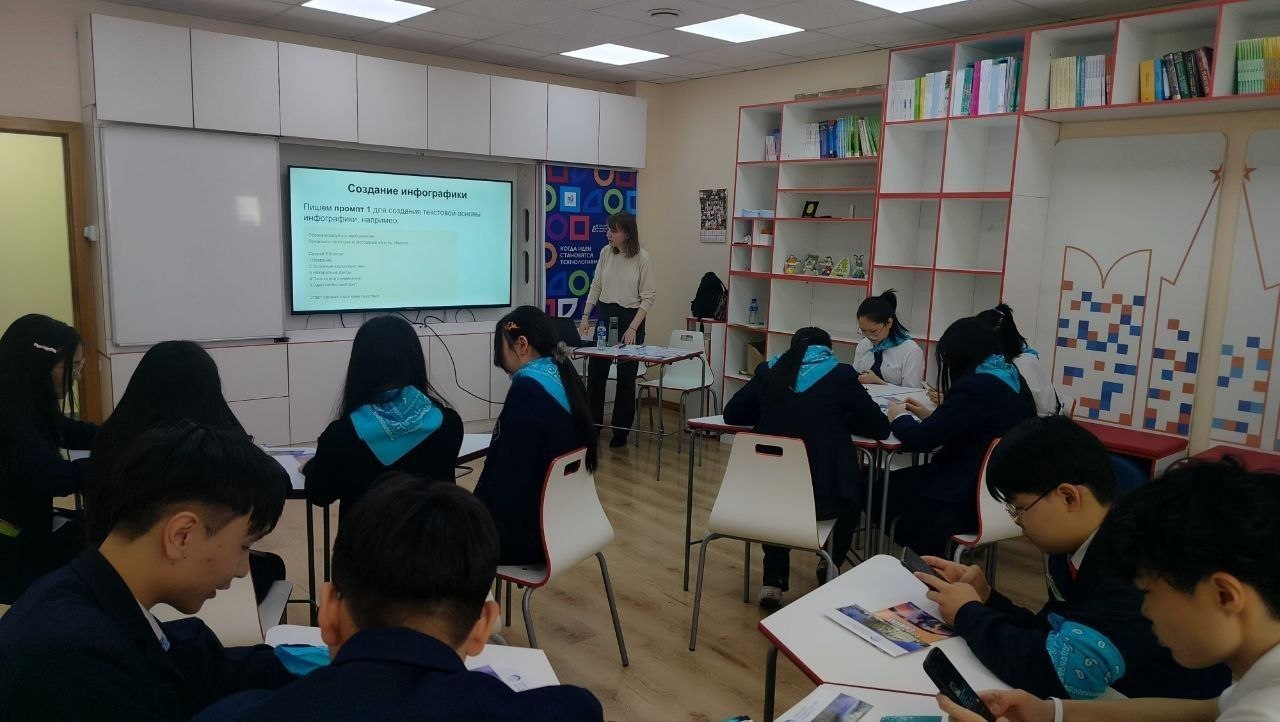 Они показали возможности использования ИИ-инструментов в образовании и сфере туризма. Интерактив Наталии Васильевны «Визуальный сторителлинг с ИИ: от текста и фотографии до инфографики» помог ребятам освоить мультимедийное представление информации, которое они могут использовать в своей учебе.