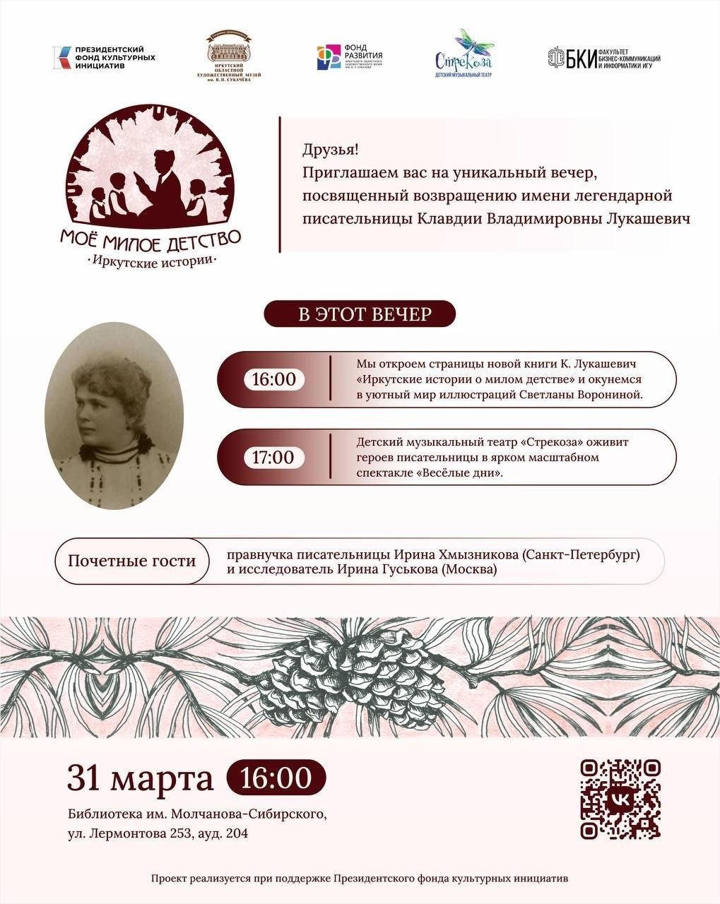 Это событие — часть большого проекта «Моё милое детство. Иркутские истории», который реализуется при поддержке Президентского фонда культурных инициатив.