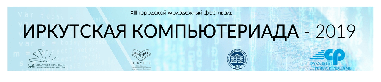 Иркутский государственный университет является одним из организаторов XIII городского молодёжного фестиваля «Иркутская компьютериада — 2019». Факультет сервиса и рекламы ИГУ и Центр молодёжного инновационного творчества «STEM-Байкал» приглашают вас принять участие в конкурсах и мастер-классах, которые пройдут в рамках очного этапа фестиваля 29−30 января 2019 года. Подробности и регистрация на сайте
